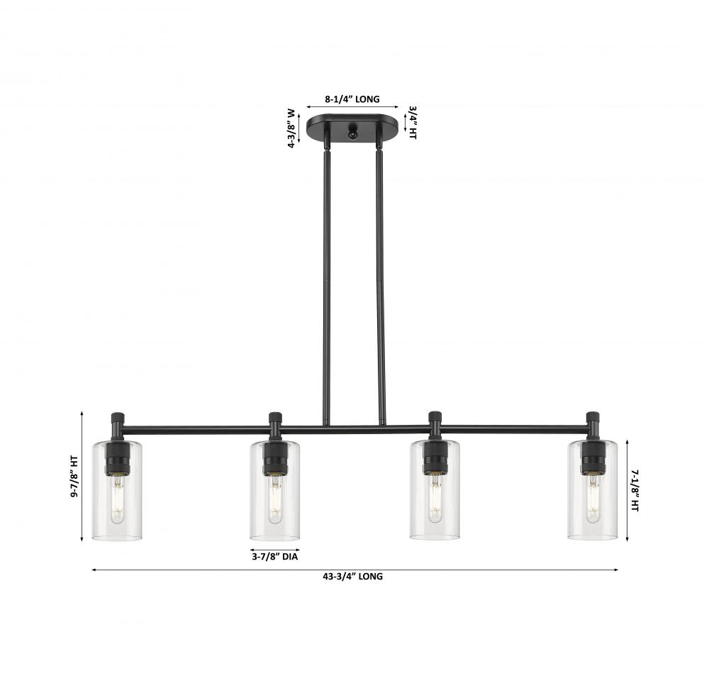 Crown Point - 4 Light - 44 inch - Matte Black - Clear Shade - Island Light