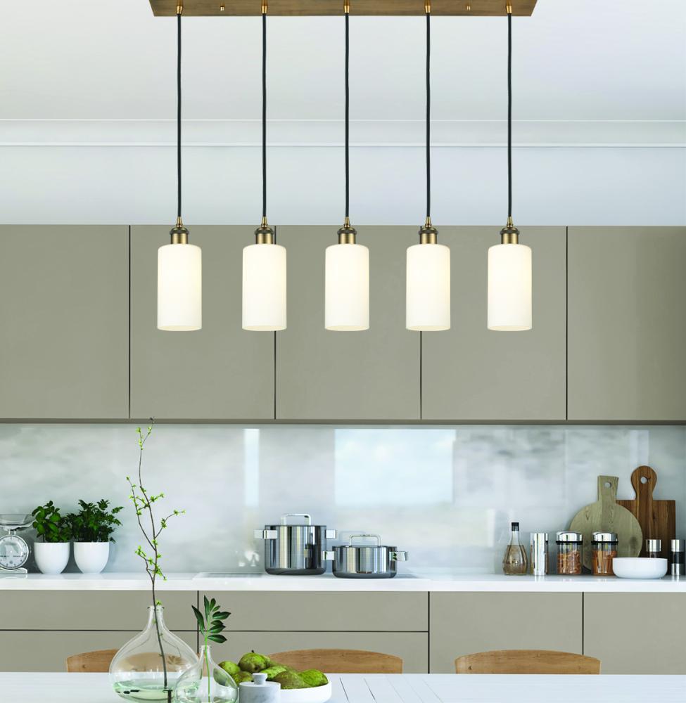 Each pendant comes with a 10-foot cord that can be trimmed to any desired length. This allows you to hang the shades at either the same height or different staggered heights.