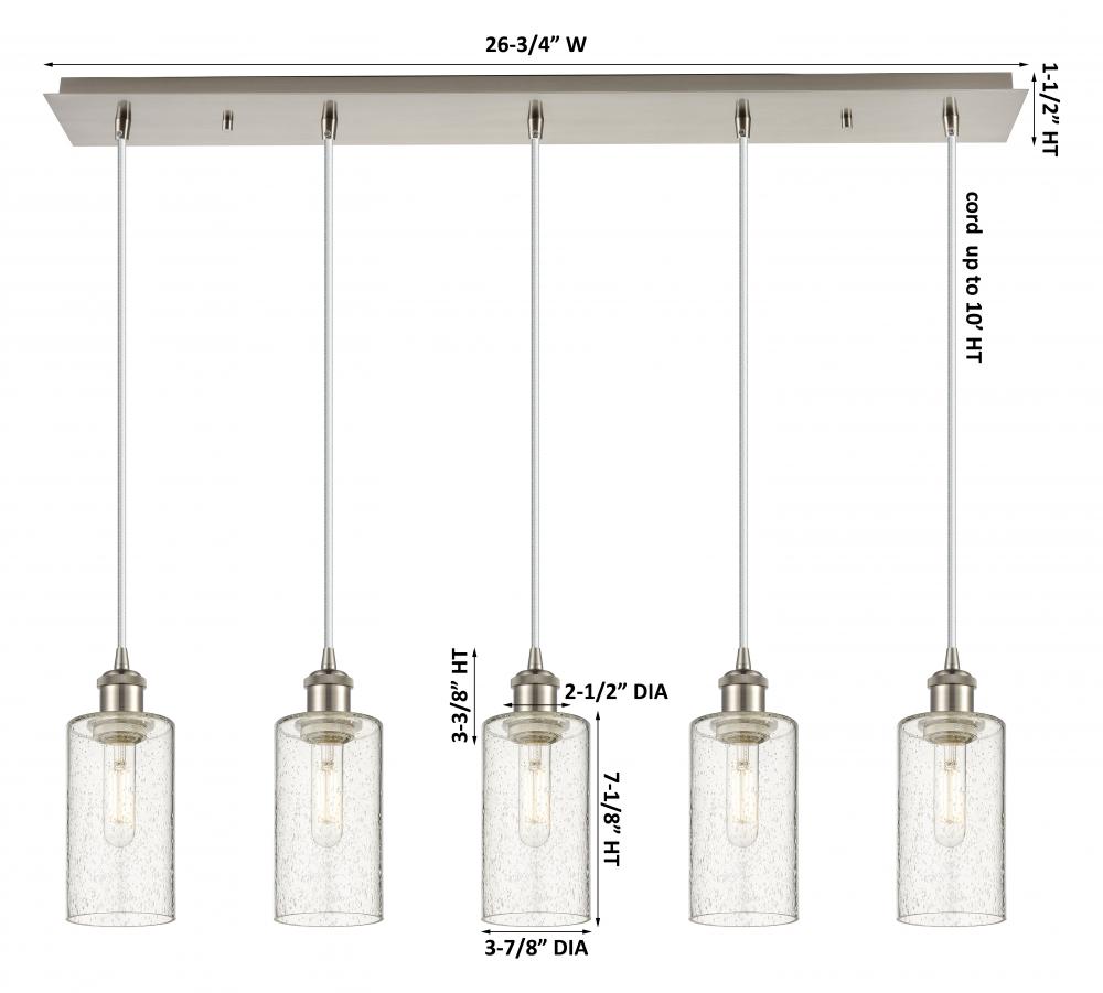 Each pendant comes with a 10-foot cord that can be trimmed to any desired length. This allows you to hang the shades at either the same height or different staggered heights.