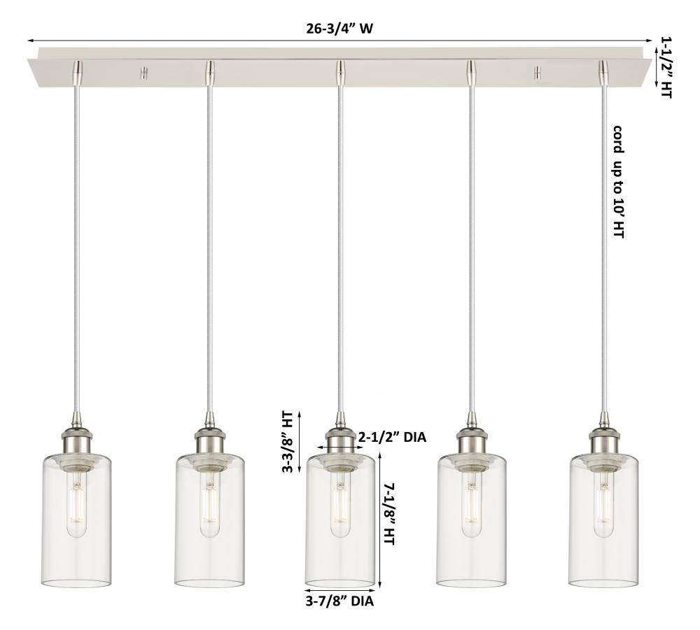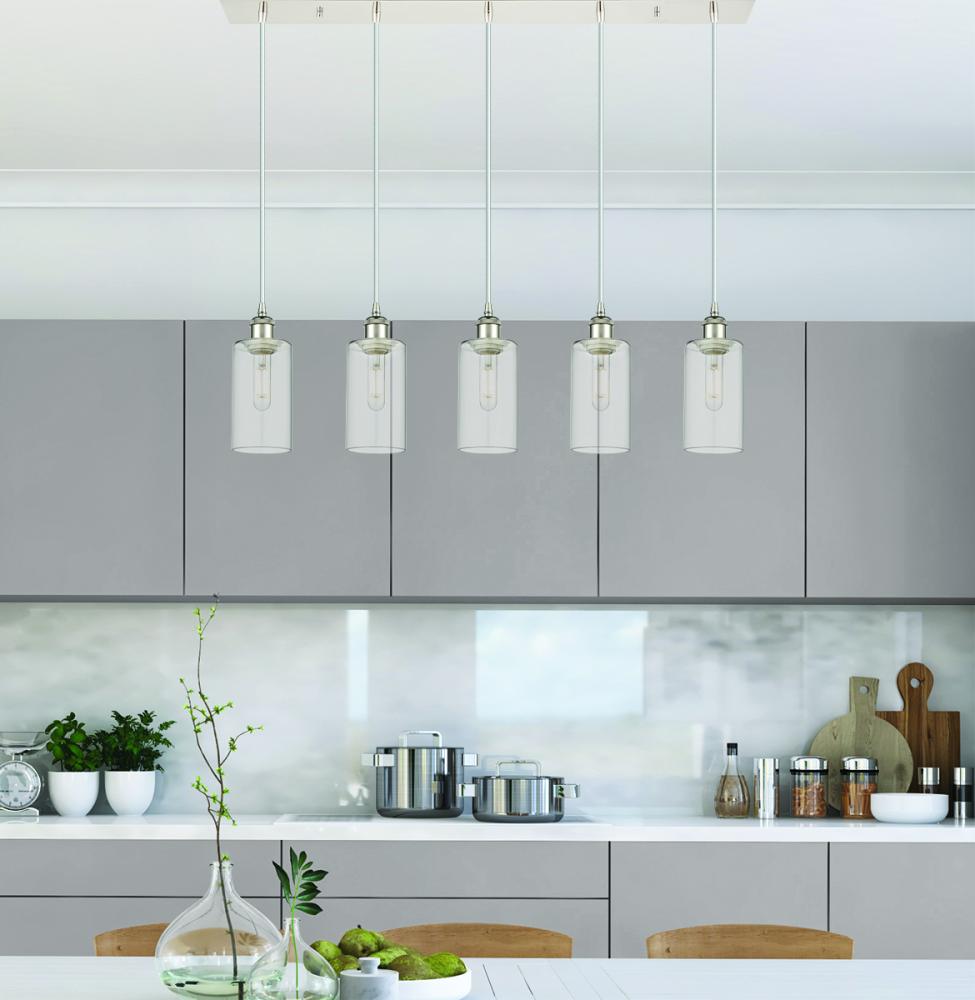 Crown Point - 5 Light - 37 inch - Polished Nickel - Clear Shade - Linear Pendant