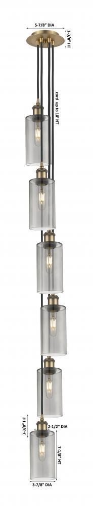 Crown Point - 6 Light - 7 inch - Brushed Brass - Light Smoke Shade - Multi Pendant