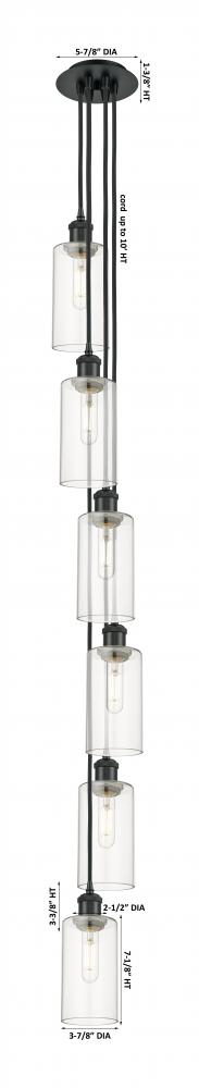 Crown Point - 6 Light - 7 inch - Matte Black - Clear Shade - Multi Pendant