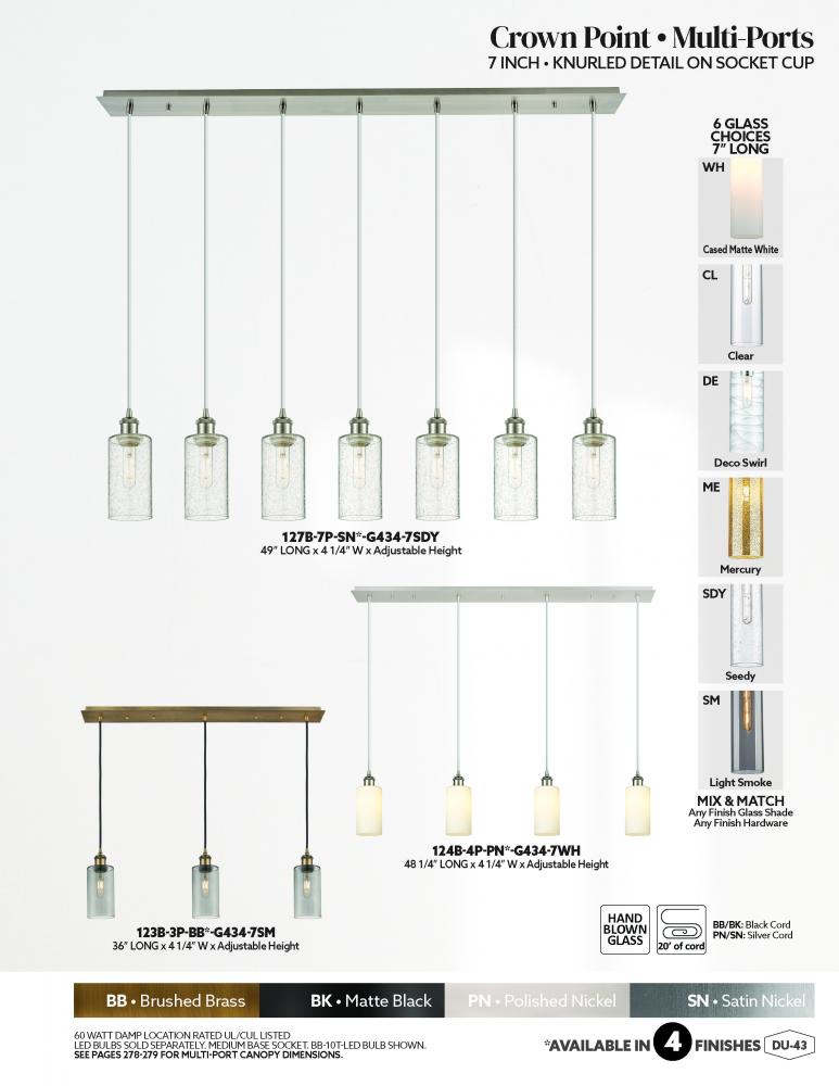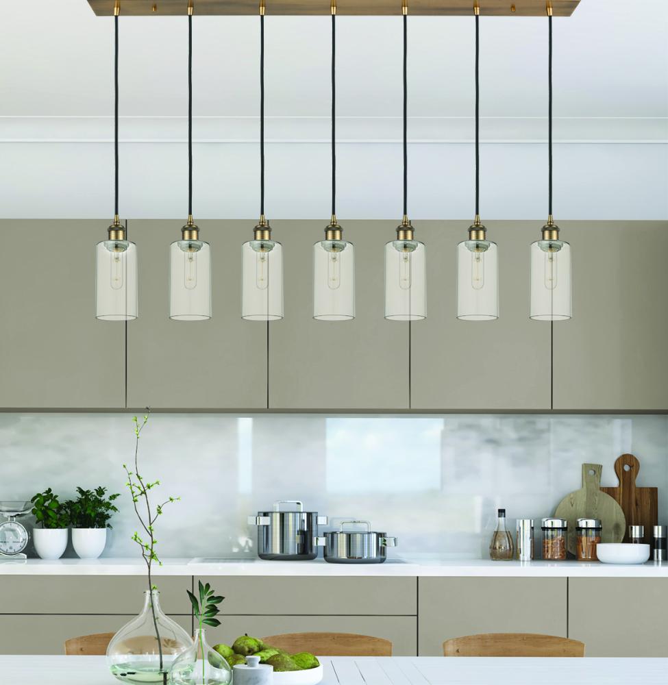 Crown Point - 7 Light - 49 inch - Brushed Brass - Clear Shade - Linear Pendant