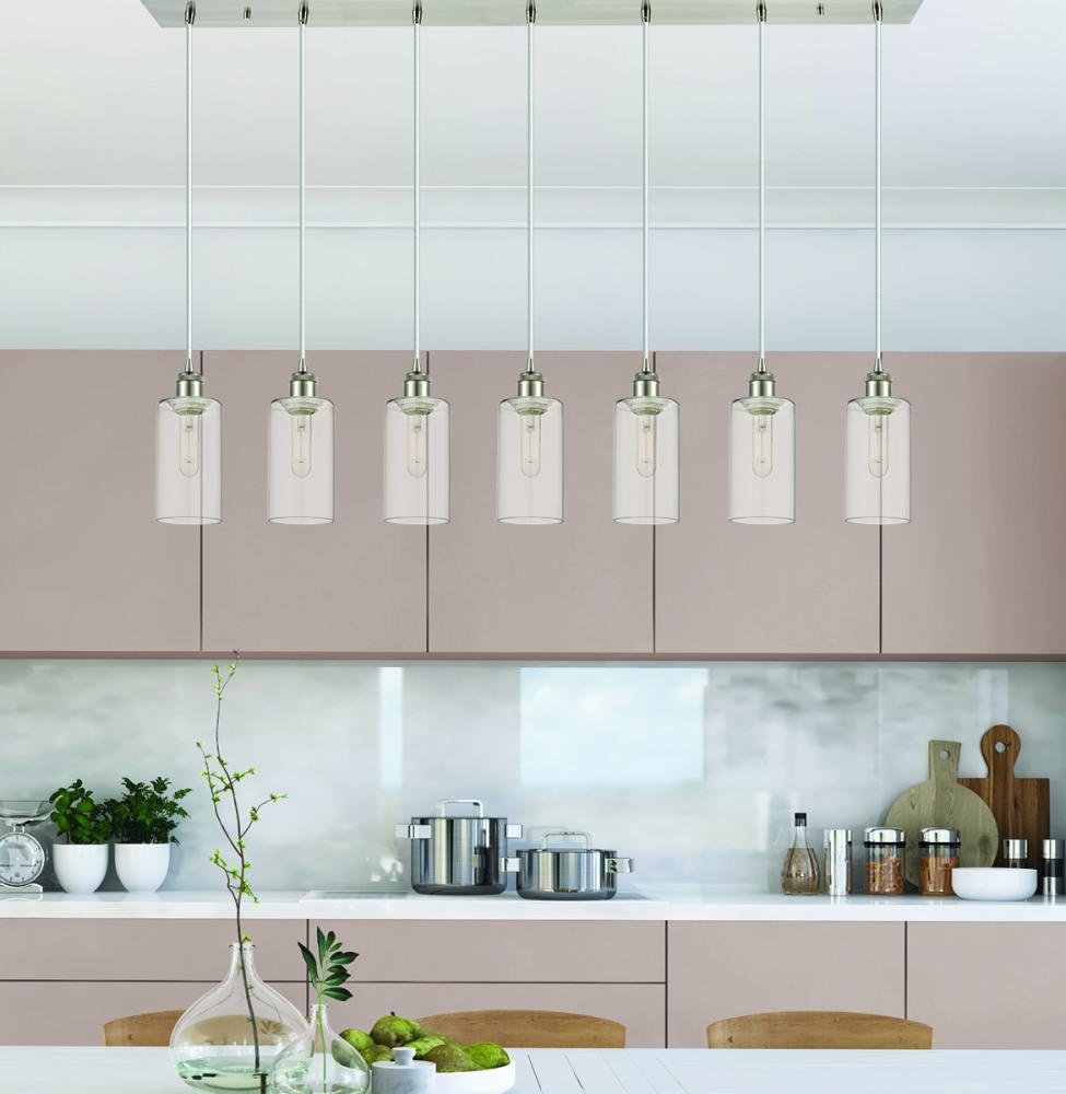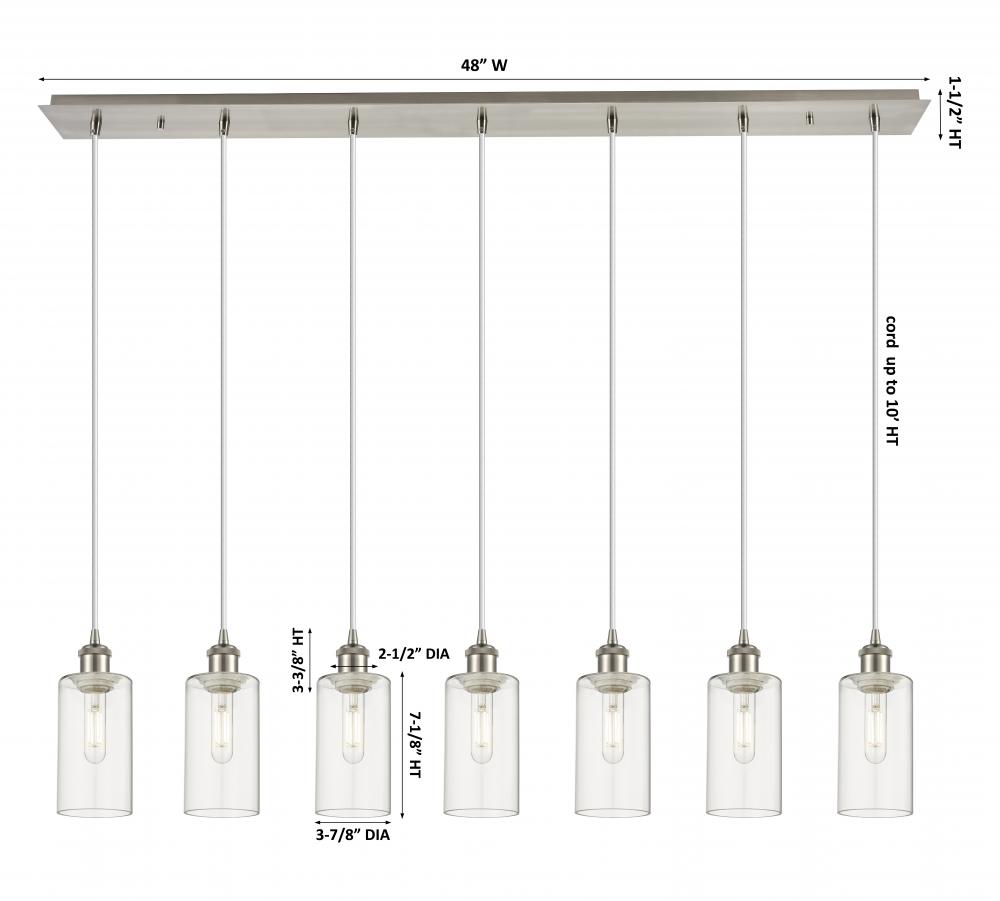 Crown Point - 7 Light - 49 inch - Brushed Satin Nickel - Clear Shade - Linear Pendant