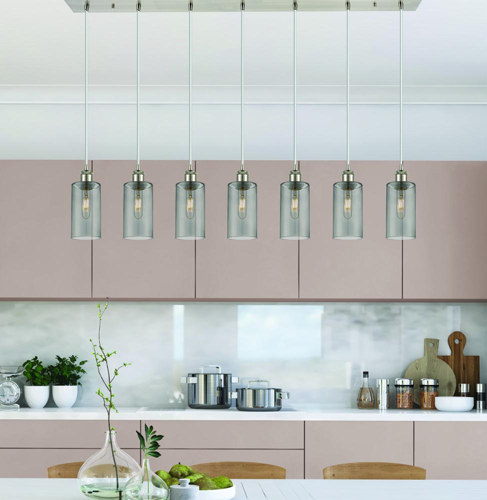 Crown Point - 7 Light - 49 inch - Brushed Satin Nickel - Light Smoke Shade - Linear Pendant
