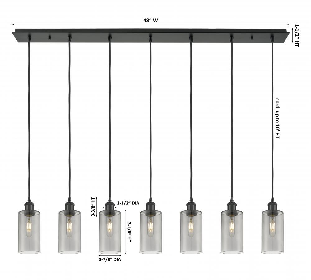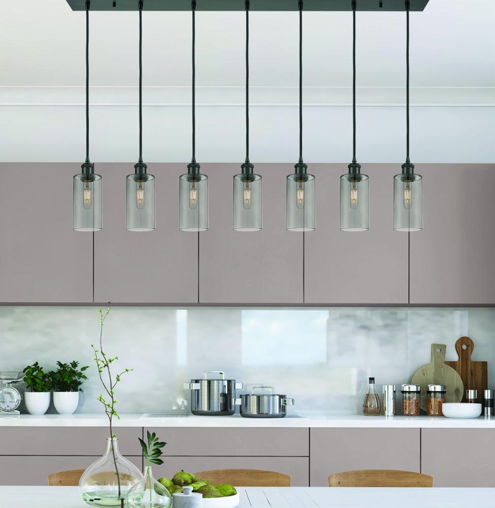 Crown Point - 7 Light - 49 inch - Matte Black - Light Smoke Shade - Linear Pendant