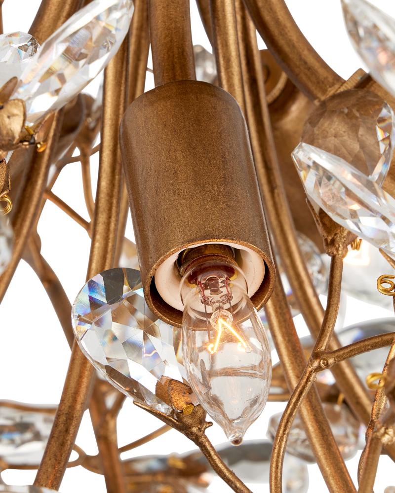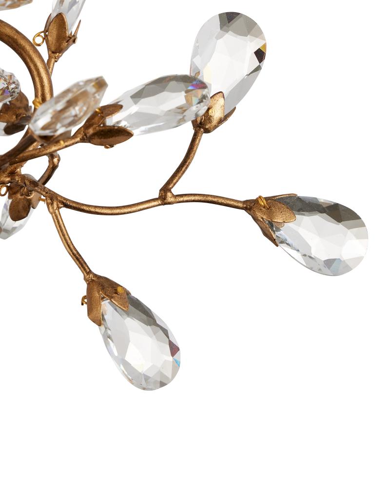 The Crystal Bud Semi-Flush Mount has delicate faceted crystals unfurling from vines that flow around the light bulbs. The gleaming metal in a brass finish serves as a warm contrast to the luminous glass; the interplay making the profile of this crystal semi-flush complex and interesting. Though there are many traditional attributes to this design, it will also feel right at home in transitional and even contemporary interiors.
