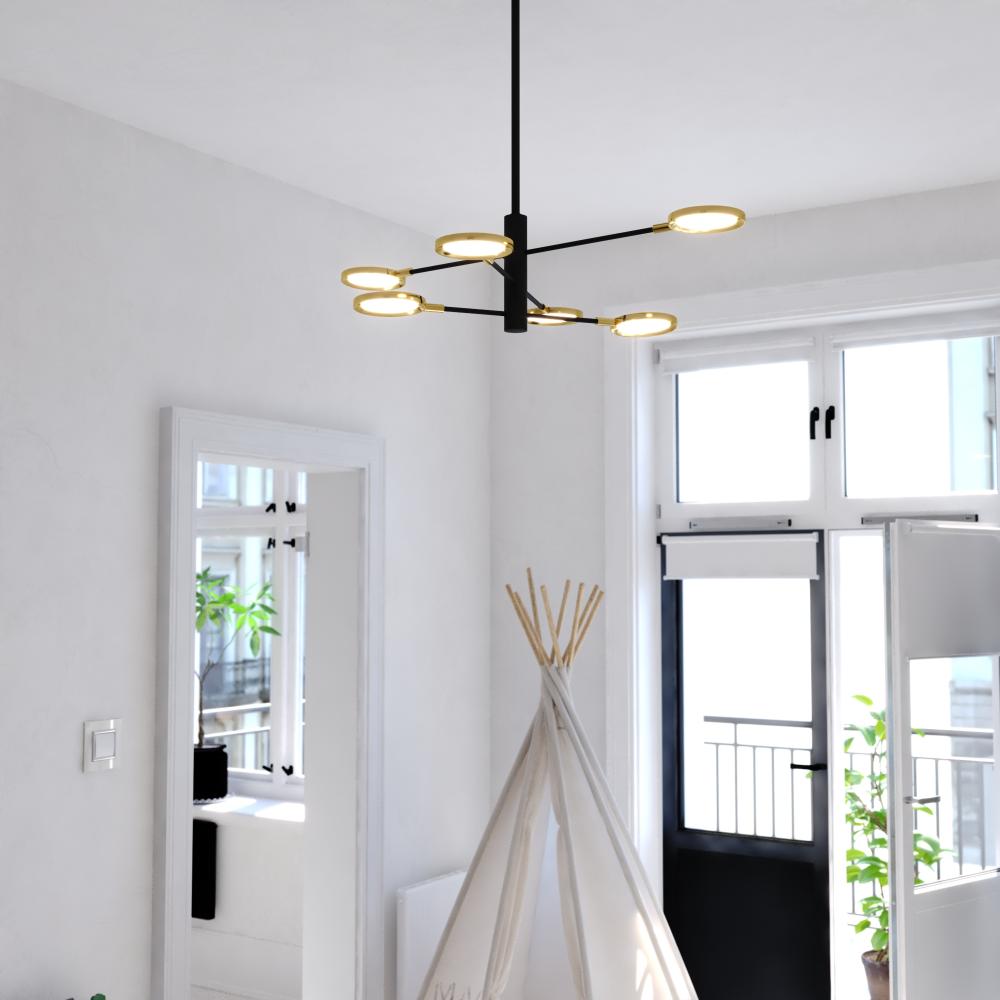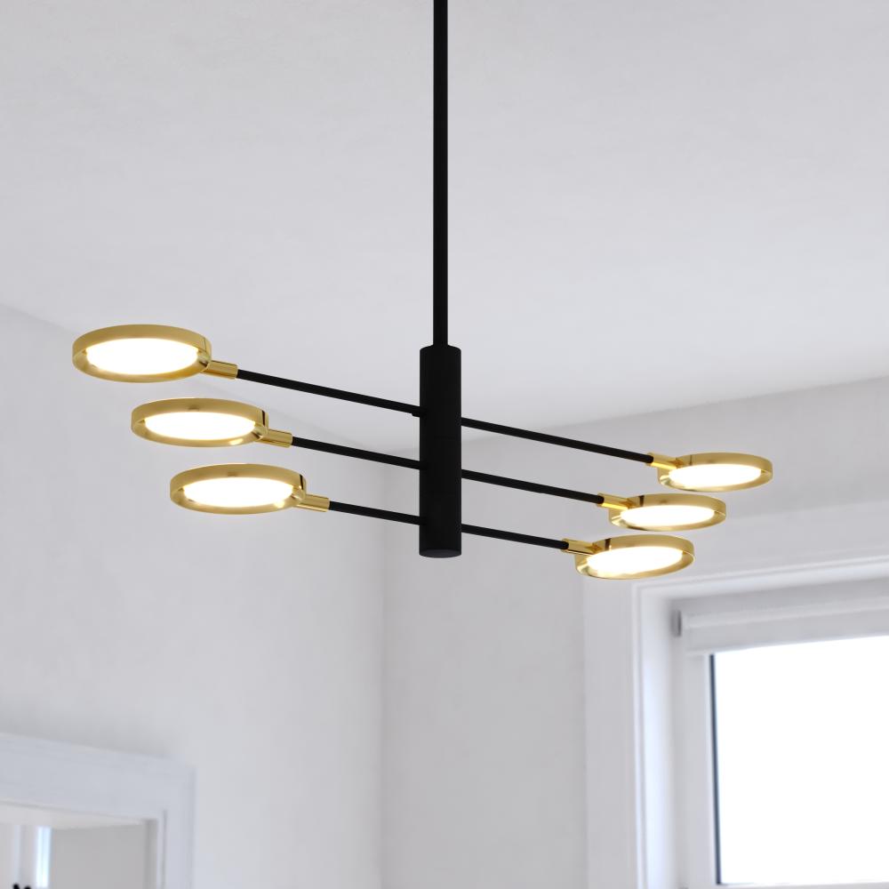 Redefine your space with the Cullerto LED pendant, a modern reimagining of the Sputnik silhouette. Sleek LED disks on elongated adjustable arms offer a unique and customizable ambiance, making it perfect for dining rooms, living rooms, or foyers. Enjoy the warm glow of energy-saving LEDs and create a statement of modern functional elegance with versatile contemporary design.