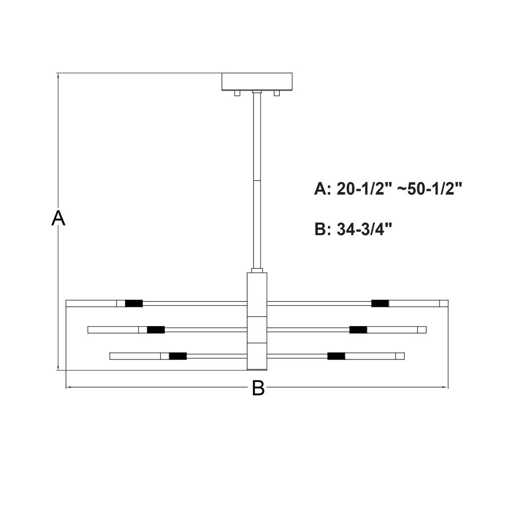 Adjustable height; 16.5-46.5 inches using 2 x 12-in, 2 x 6-in of included down rods; sloped ceiling compatible