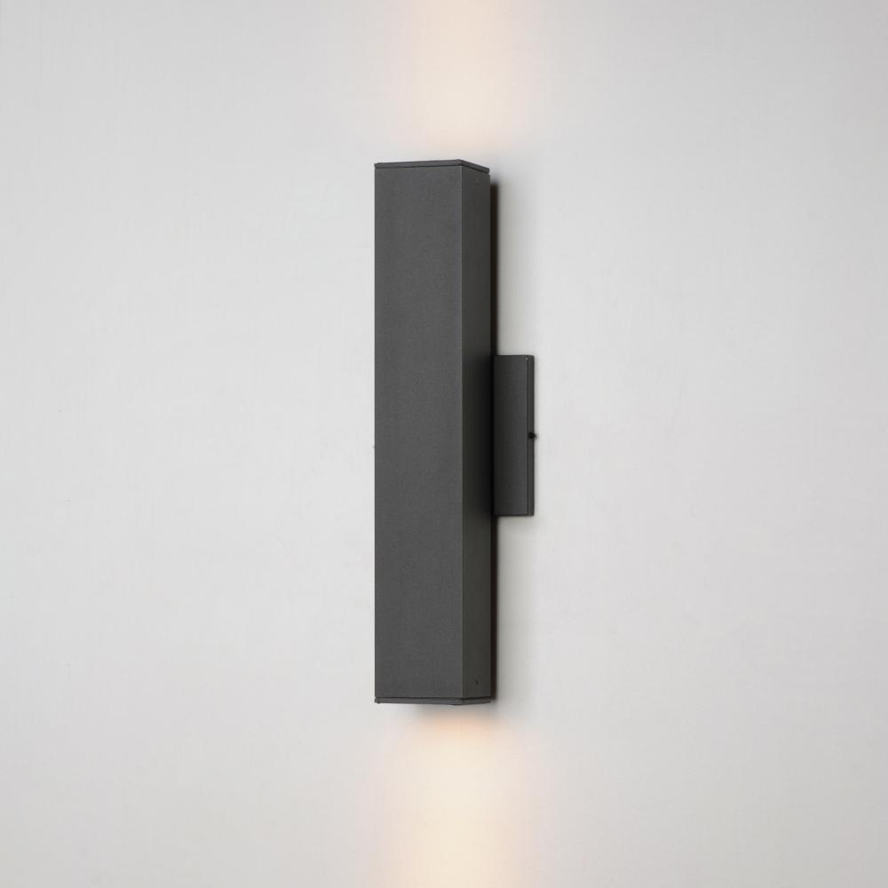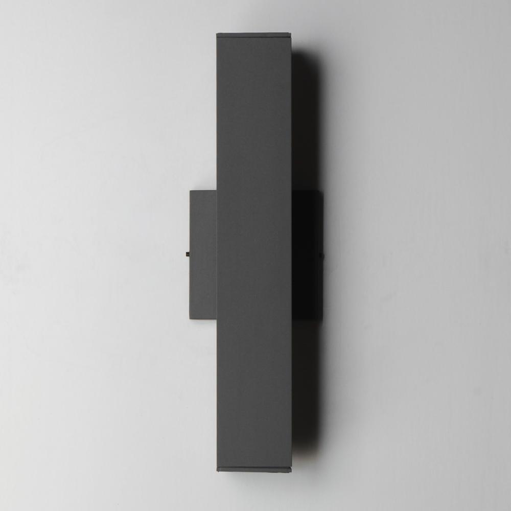 Smaller square profiles extend vertically with ample lighting cast both upward and downwards. The scale of the product is designed to meet ADA requirements, while providing generous light for outdoor applications. Concealed within the frame, there is a ran