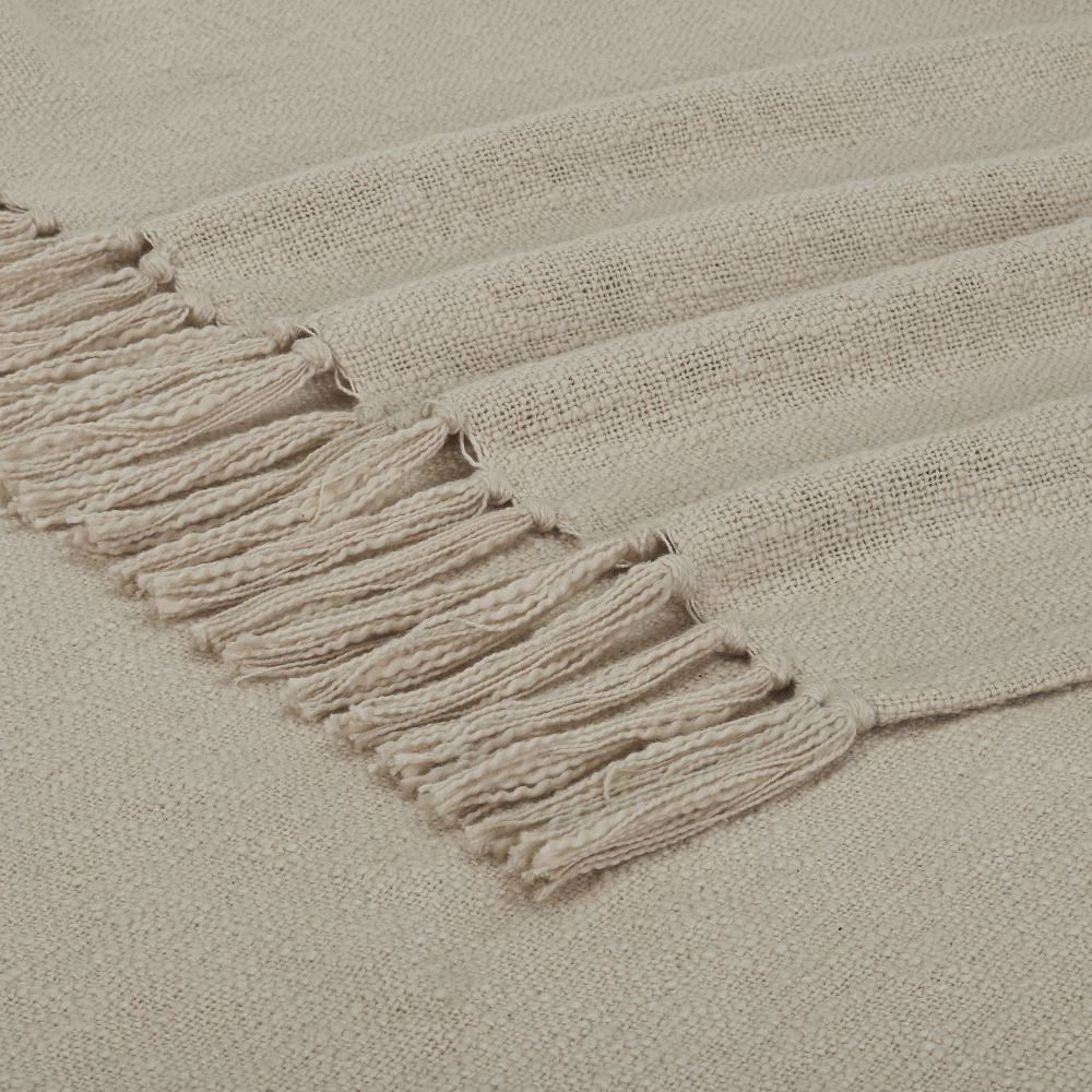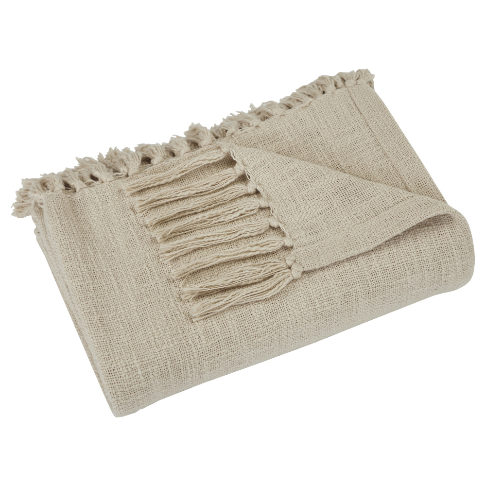 When it comes to bed throws or sofa throws, one should never sacrifice comfort for style. The Curtis throw proves you can have both. Woven from 100% cotton, this beige-hued blanket features a luxurious texture and eye-catching fringed trim for visual interest. Even when it’s not in use, this accessory adds beauty and dimension to any space. Throw it casually over a sofa or lay it at the foot of a bed to create a stylish layered look. Once you discover the relaxed vibe and cozy feel of this blanket, you may want to pick one up for every room.