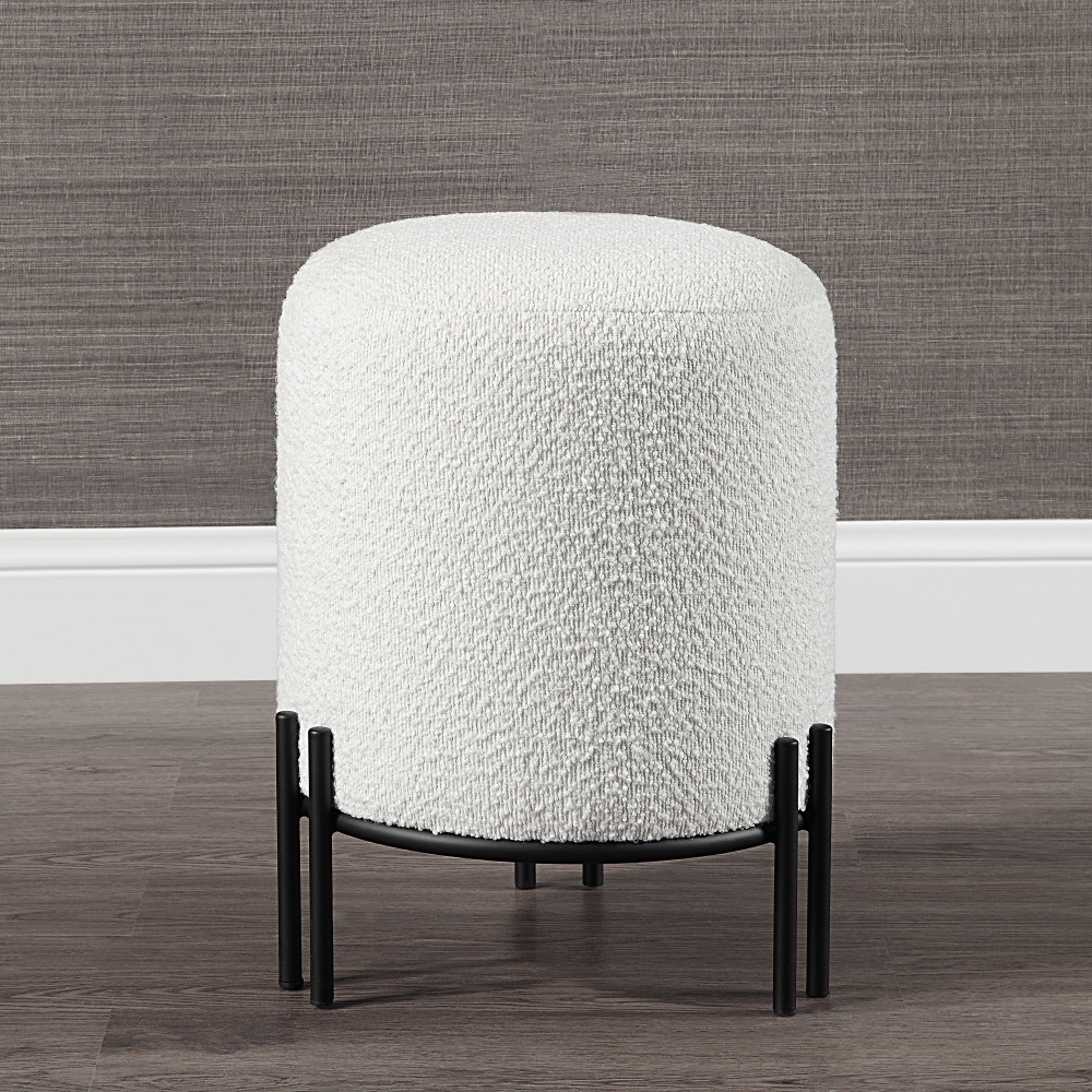 The Cynthia 14" Wide Stool in ivory provides both style and functionality to any space. With its high-quality boucle construction, it promises to be durable, ensuring its 200 lb weight capacity is suitable for all. The sleek ivory finish makes it a perfect addition to all decor styles and it can be used as an additional seating option or as a comfortable foot stool. This versatile and stylish stool is a must-have for any home or office setting.