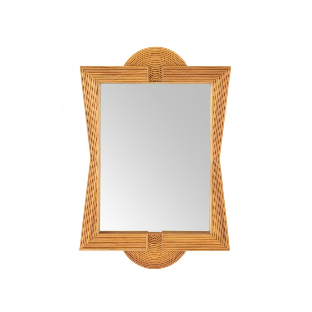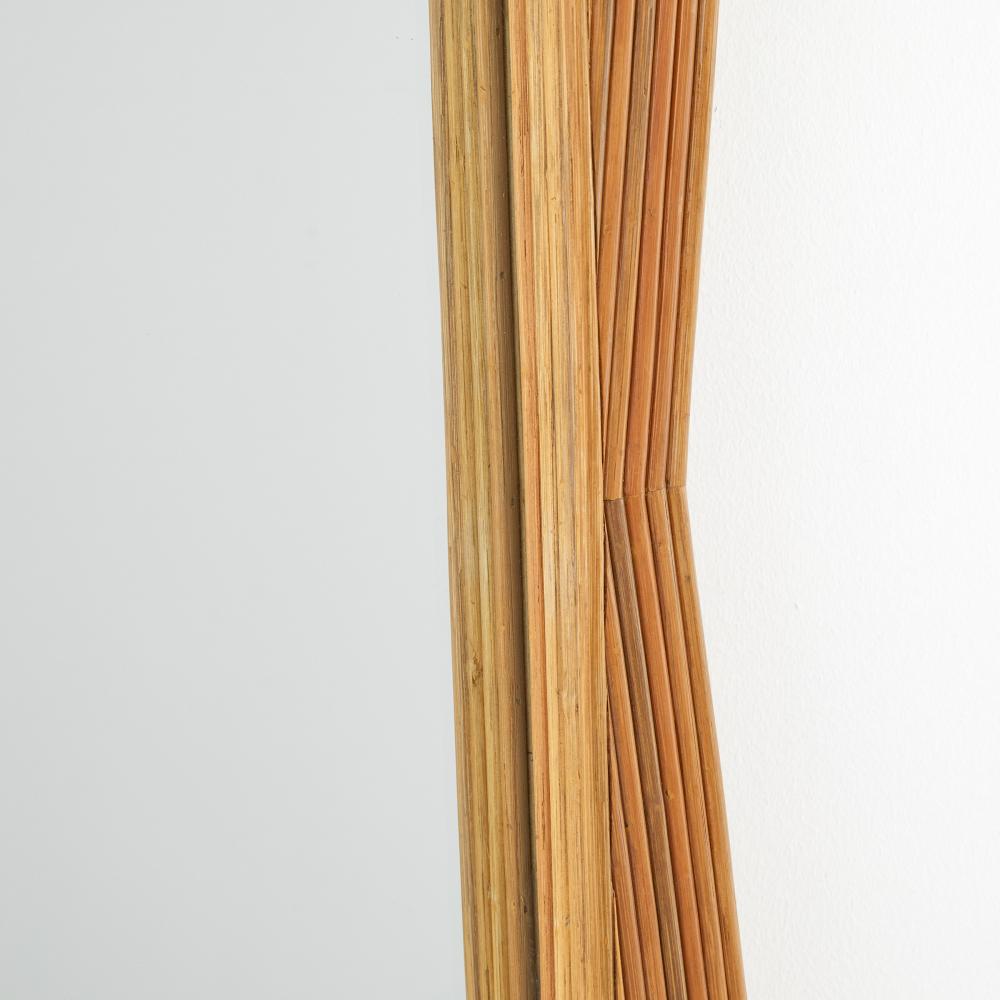 Wrapped in natural rattan, this geometric style brings an organic texture to any room. Inspired by the modern forms found in mid-century architecture, the decorative frame surrounds a simple rectangular mirror. Designed to be hung vertically or horizontally, it is secured with a hanging cleat at the back. Rattan will vary.