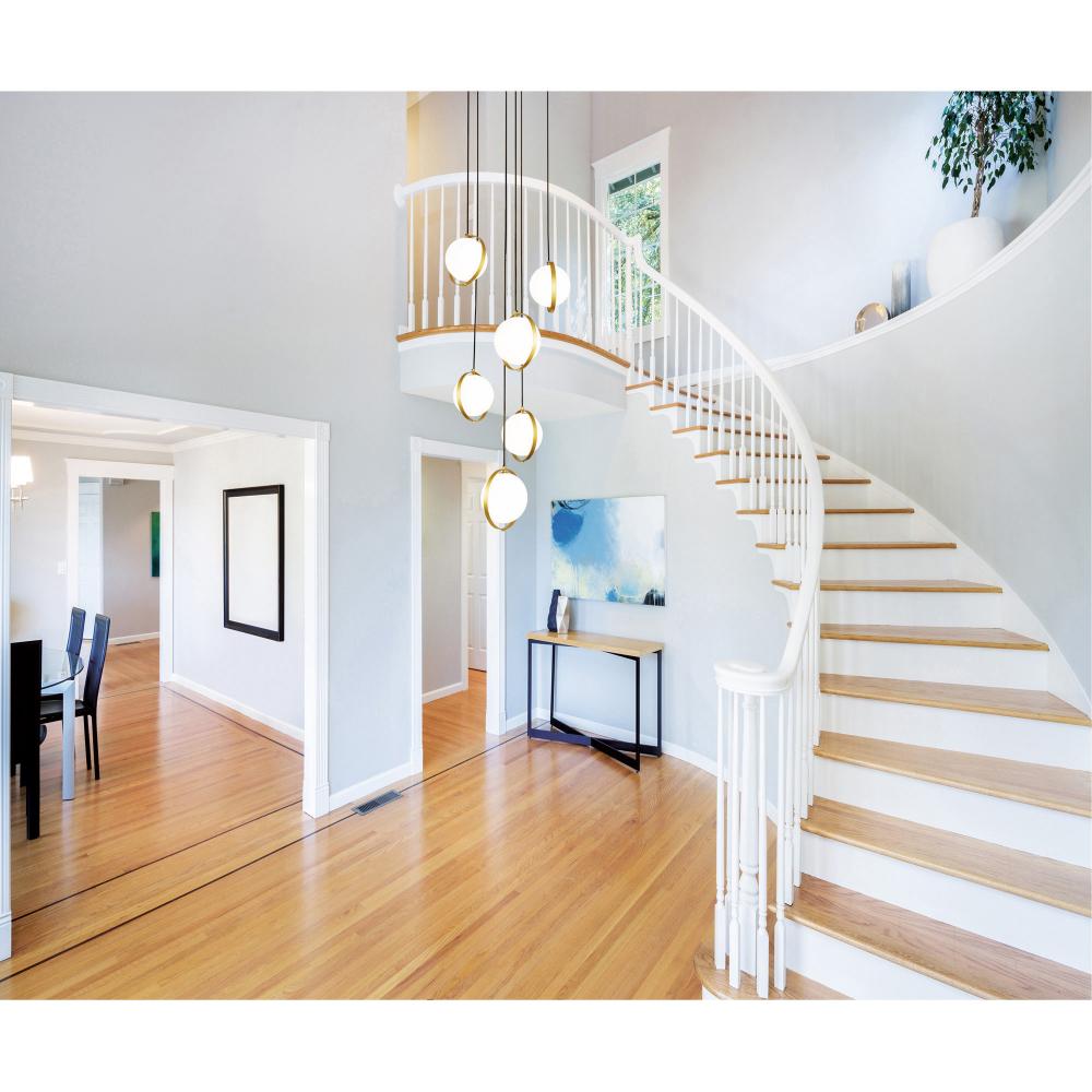 Bring a brilliant modern style to your space with the Da Vinci 6 Light Chandelier in Brass. This multi Light pendant features a cluster of white frosted glass orbs with each orb enveloped by a golden ring. This luminaire can beautifully illuminate a stairw