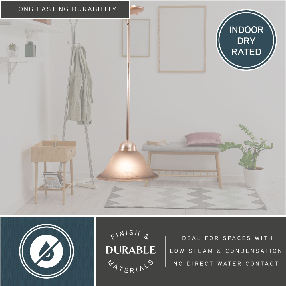 Interior dry rated; ideal for dining rooms, kitchens, islands, bar areas, or any other dry area of your home