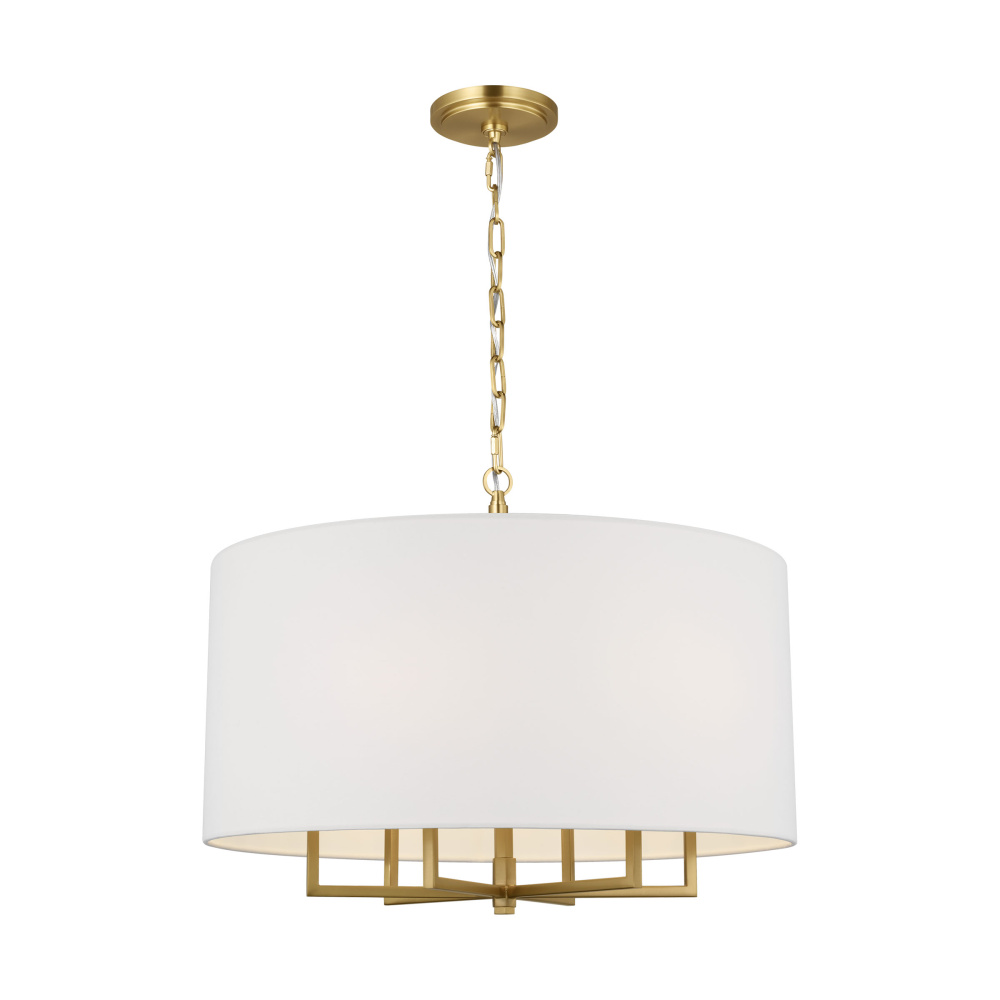 Crafted with Steel in a Burnished Brass finish with white linen fabric shade