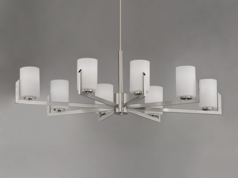 Inspired by the Modernist architect Edward Dart, this collection features straight line frames finished in Satin Brass, Satin Nickel, or Matte Black that support Satin White glass cylinders for a clean and modern look. The frames' ends turn up before t
