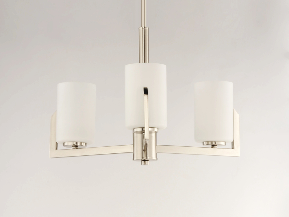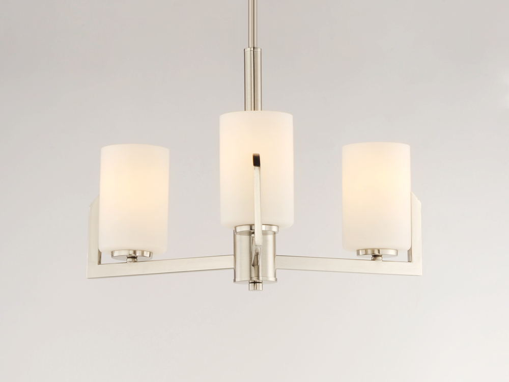 Inspired by the Modernist architect Edward Dart, this collection features straight line frames finished in Satin Brass, Satin Nickel, or Matte Black that support Satin White glass cylinders for a clean and modern look. The frames' ends turn up before t