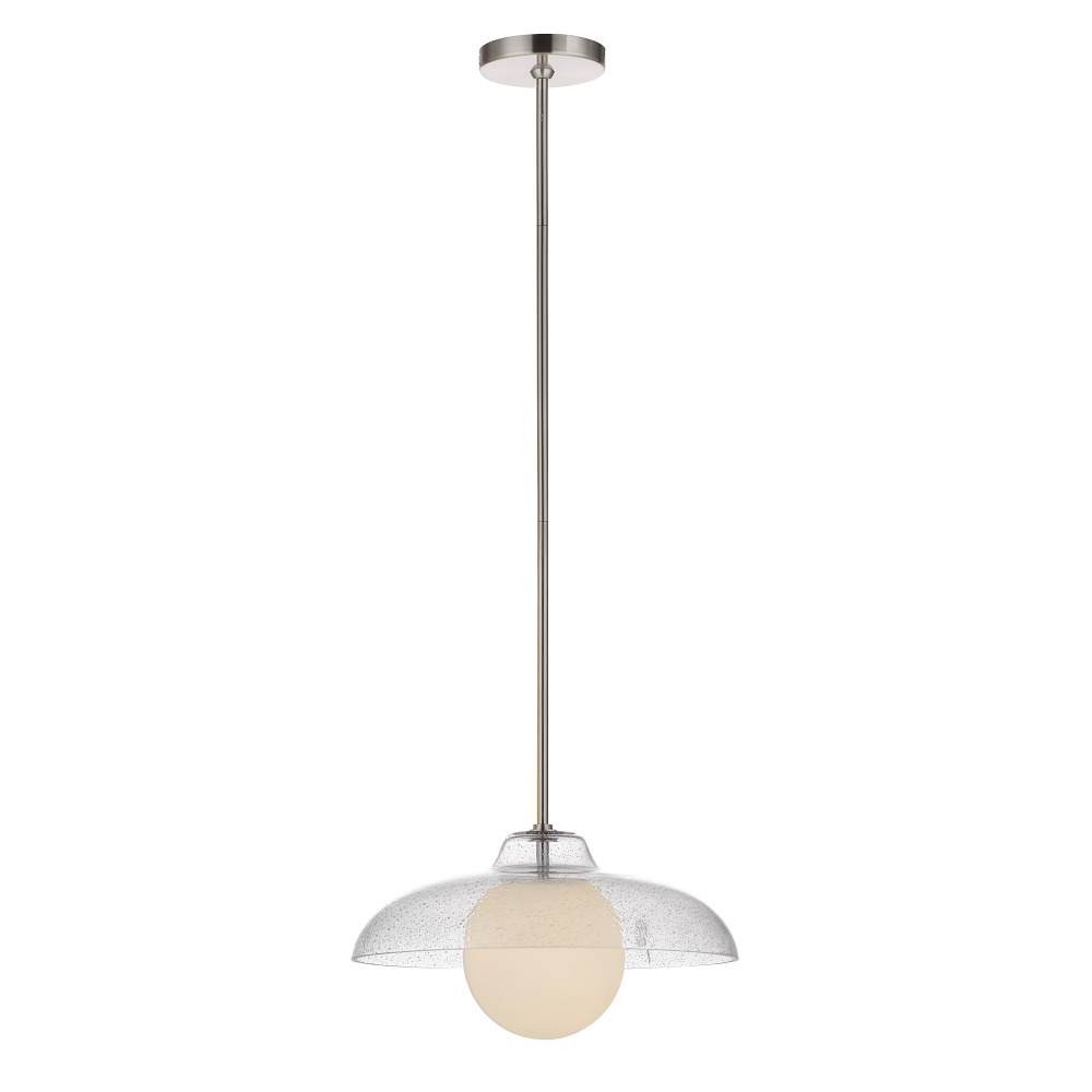 Once you lay eyes on the Dayana ceiling light fixture, you’ll know you’ve found the perfect pendant worthy your design project. It features a unique combination of two types of glass and plated satin nickel hardware that work together to deliver a beautifully balanced, timeless look in any interior. Its seeded glass shade and etched glass globe both transform light into a softly diffused ambient glow for lighting that’s just right and never too bright. Perfect for hanging solo over a kitchen table or in an entryway, or in multiples over an island, this ceiling pendant is sure to leave a lasting impression anywhere it hangs.