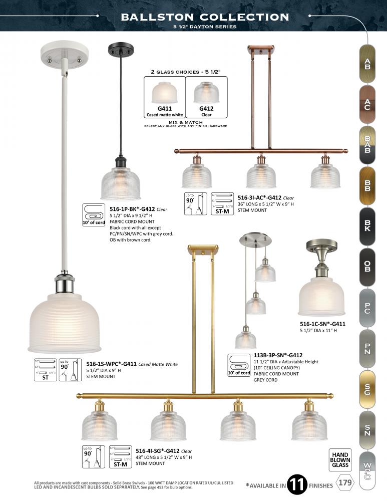 The Ballston collection is comprised of heavy cast components that give the fixture a sturdy contemporary look. We offer the fixture in 11 finishes with a Bare Bulb look or with over 100 possible metal and glass shade options that can change the style to f