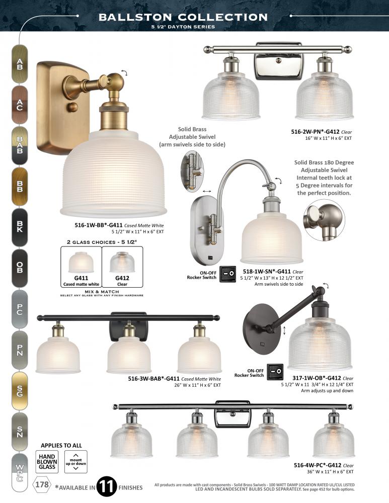 The Ballston collection is comprised of heavy cast components that give the fixture a sturdy contemporary look. We offer the fixture in 11 finishes with a Bare Bulb look or with over 100 possible metal and glass shade options that can change the style to f