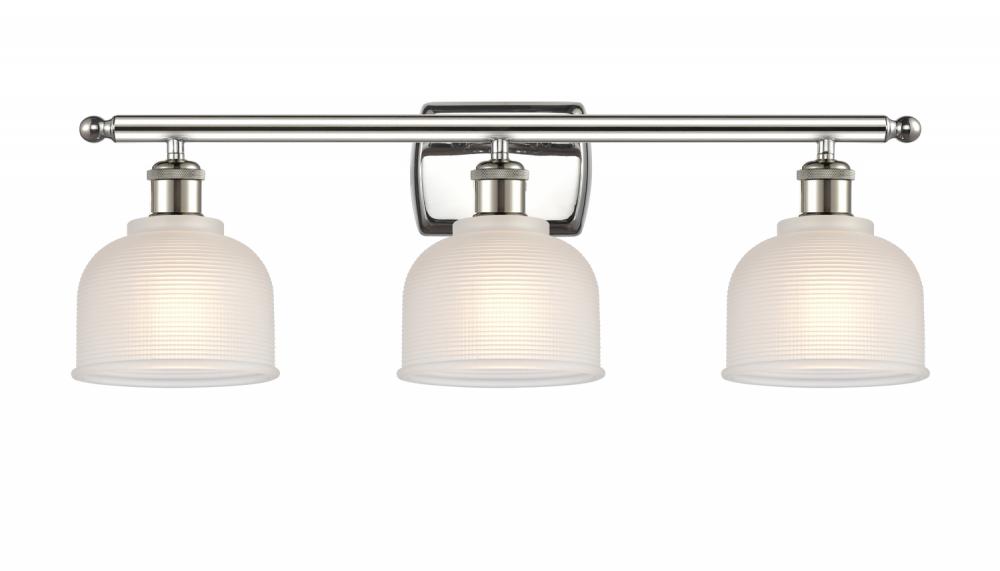 Dayton - 3 Light - 26 inch - Polished Nickel - White Shade - Bath Vanity Light