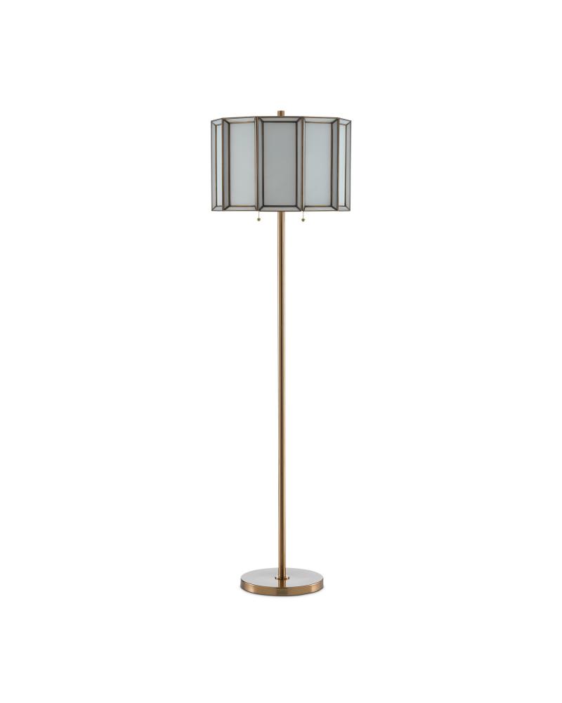 When a soft glow is desired, milk glass is one of the best materials to diffuse illumination. Our Daze Floor Lamp is made of articulated panels of white milk glass that are joined together by ribs of metal in an antique brass finish. This milk-glass floor lamp will turn luminous when it is switched on.