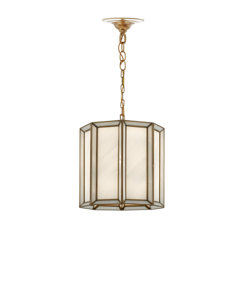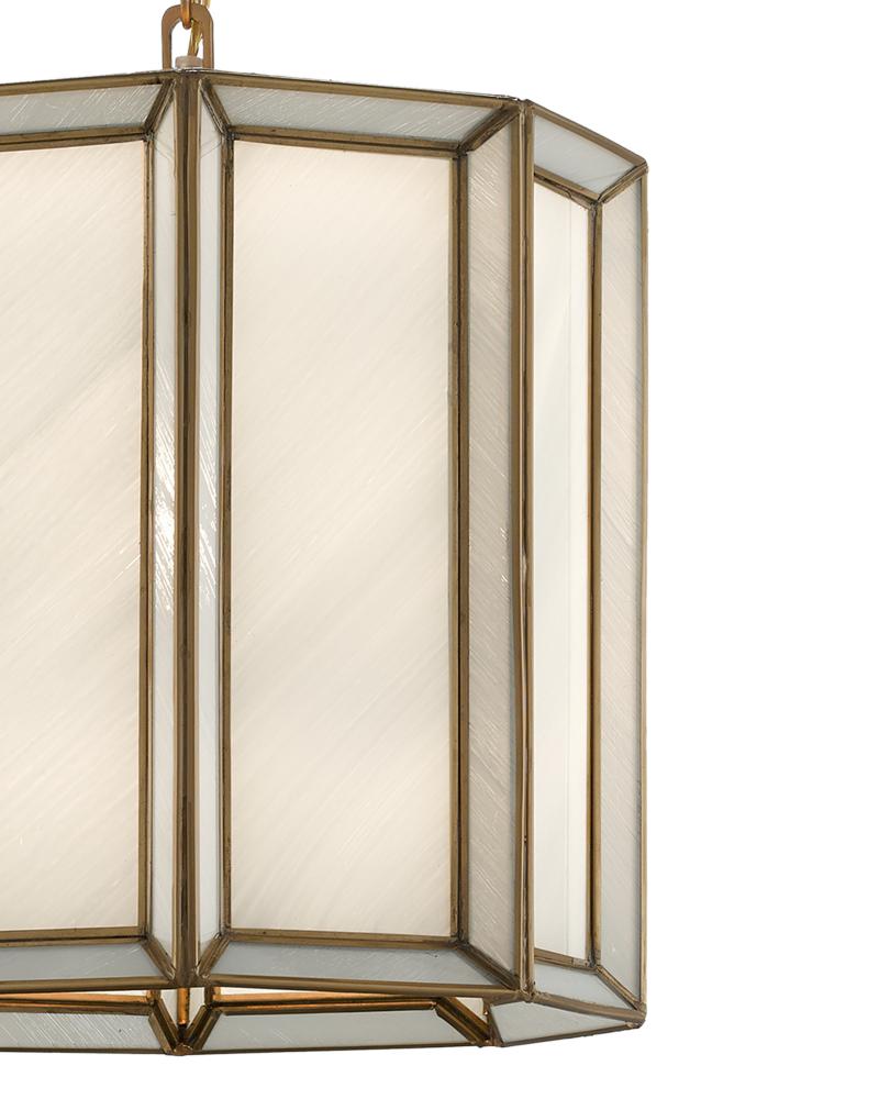 When a soft glow is desired, milk glass is one of the best materials to diffuse illumination. Our Daze Pendant is made of articulated panels of white milk glass that are joined together by ribs of metal in an antique brass finish. This milk glass pendant will turn luminous when it is switched on. Adjustable from 20" to 88" with use of included chain/rod kit/cable. If your space calls for a longer drop, additional chain/rods/cable is available for purchase.