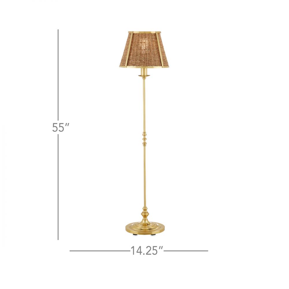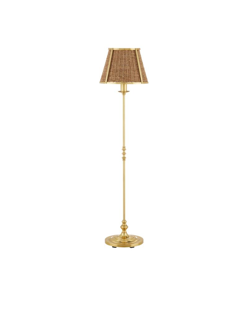 The Deauville Floor Lamp was created by Suzanne Duin, who founded the Houston shop and design studio Maison Maison, and is known for a keen eye in sourcing authentic French antiques and home accessories from around the globe. Each piece in her line of woven light fixtures is handmade by artisans in Southeast Asia; the Deauville an example in natural seagrass and steel in a polished brass finish. This tailored floor lamp trimmed in gold brings both texture and French flair.
