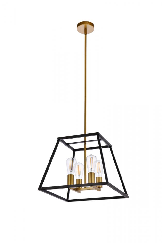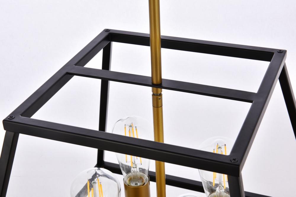 Features a four light open latern chandelier