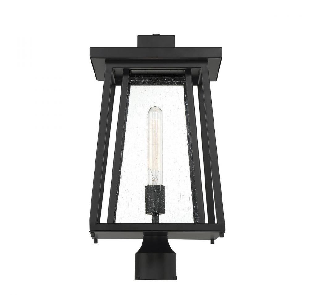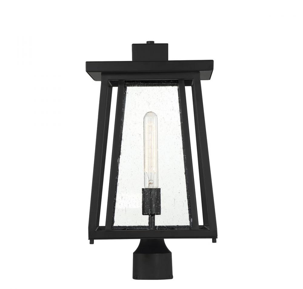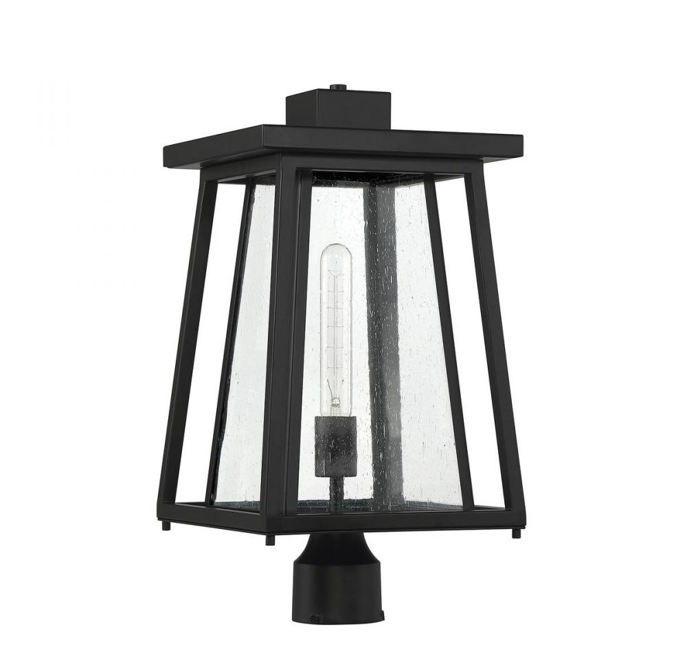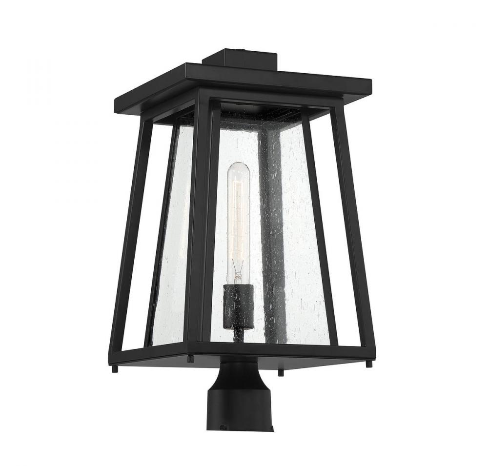 Boost your curb appeal and create a great first impression with the Craftsman-inspired style of the Savoy House Denver 1-light outdoor post mount lantern. Clear seedy glass and a matte black finish make Denver a great choice for lighting up today's fashionable homes. This fixture is 19" in height and 10" in width. It uses one standard size bulb with a max of 60 watts. Wet area rated.