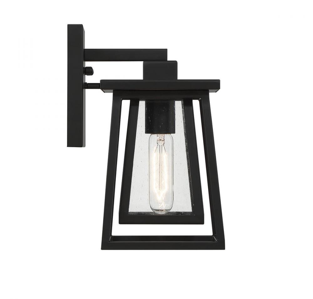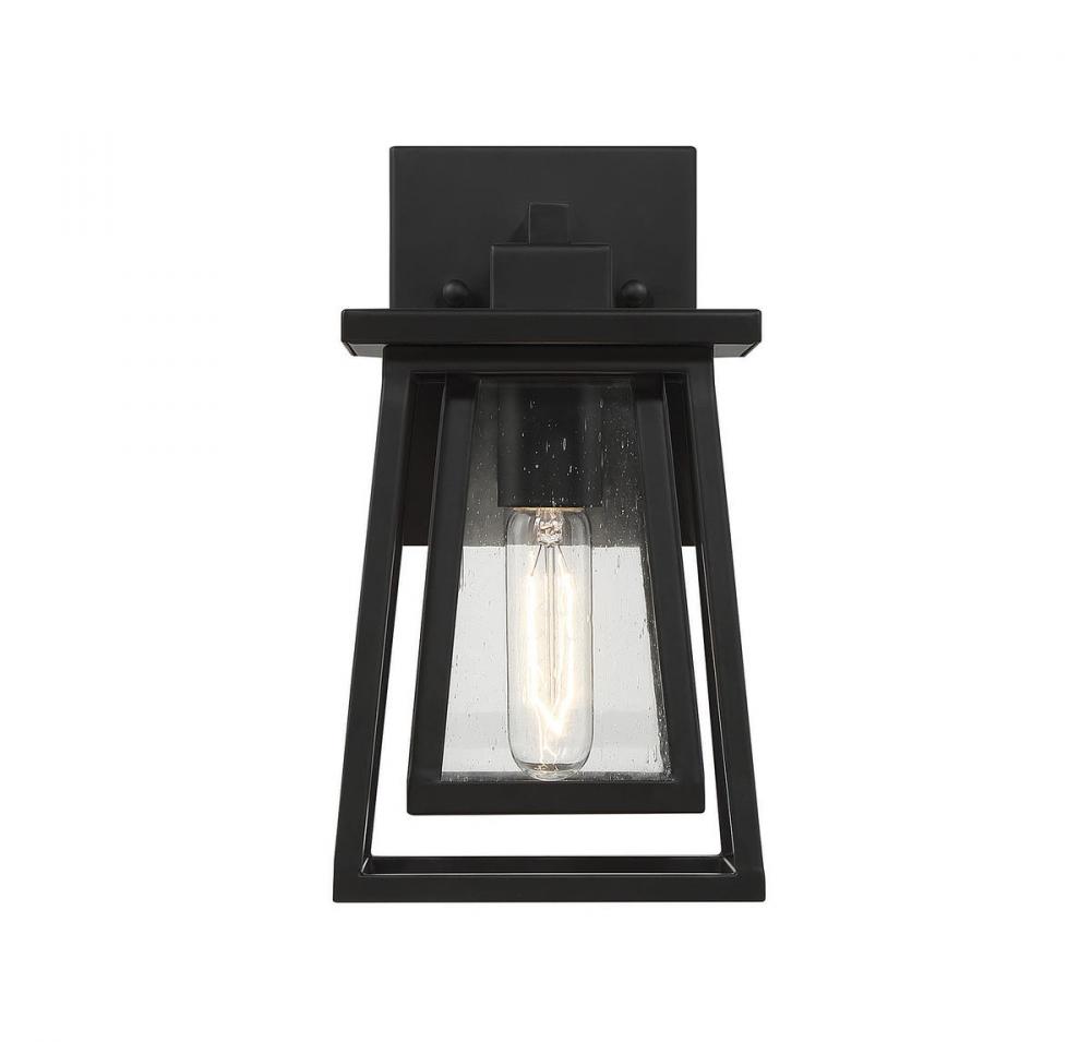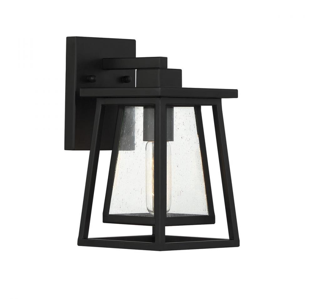 Boost your curb appeal and create a great first impression with the Craftsman-inspired style of the Savoy House Denver 1-light outdoor wall lantern. Clear seedy glass and a matte black finish make Denver a great choice for lighting up today's fashionable homes. This fixture is 11" in height, 6" in width and extends 7.5" from the wall. It uses one standard size bulb with a max of 60 watts. Wet area rated.
