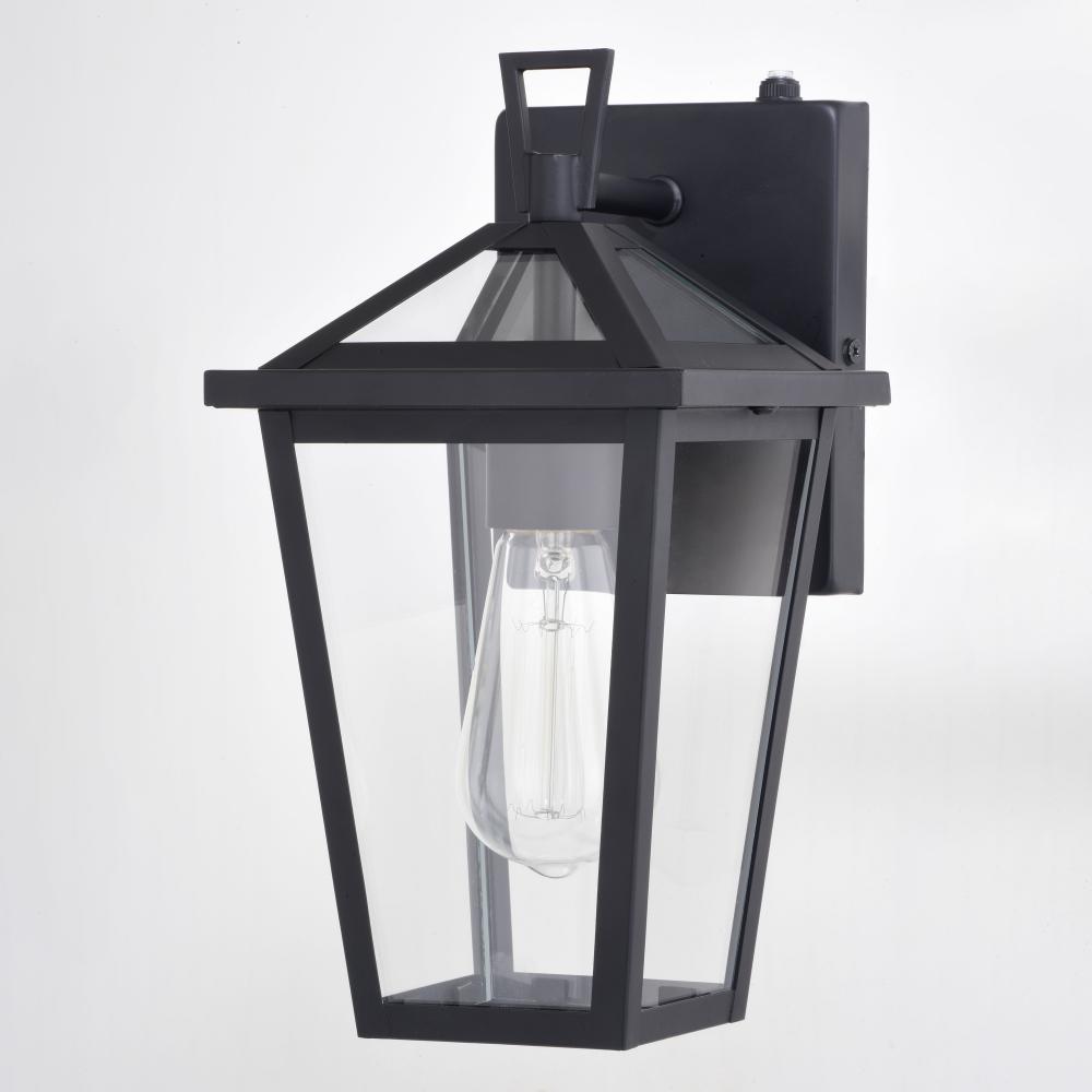 This traditional outdoor wall lantern from the Derby collection will add a touch of sophistication to the exterior of your home. With its matte black finish and clear glass, this timeless piece provides a great mix of style and functionality. It has a built-in dusk to dawn photocell that automatically turns the light on at dusk and turns it off at dawn, saving energy during daylight hours. This outdoor wall light is ideal for your porch, entryway, garage, or any other area of your home.
