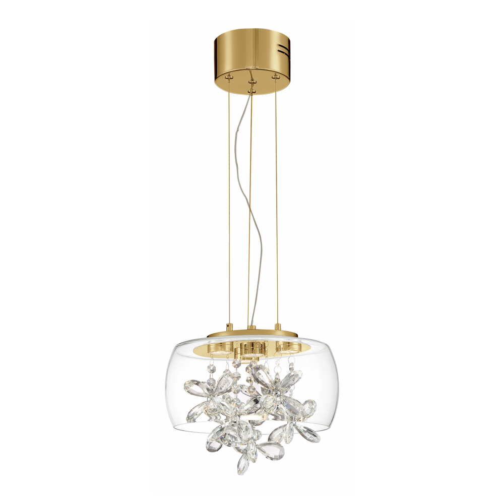 LED 11" Clear Glass Dome Shade with Clear Butterfly Crystal Stranded Mini Pendant with Aged Brass Metal Finish.