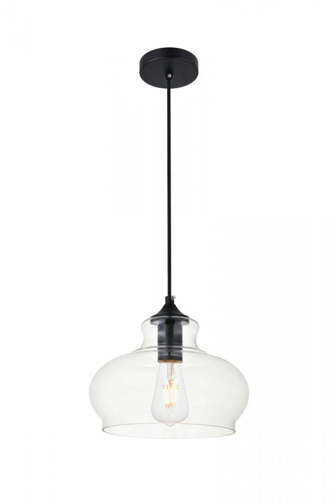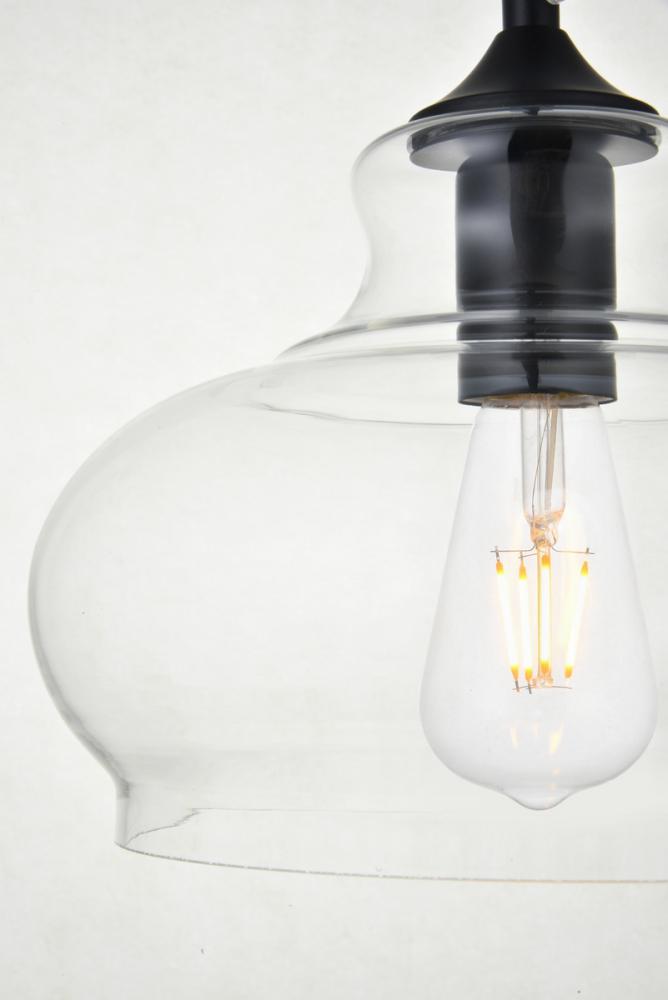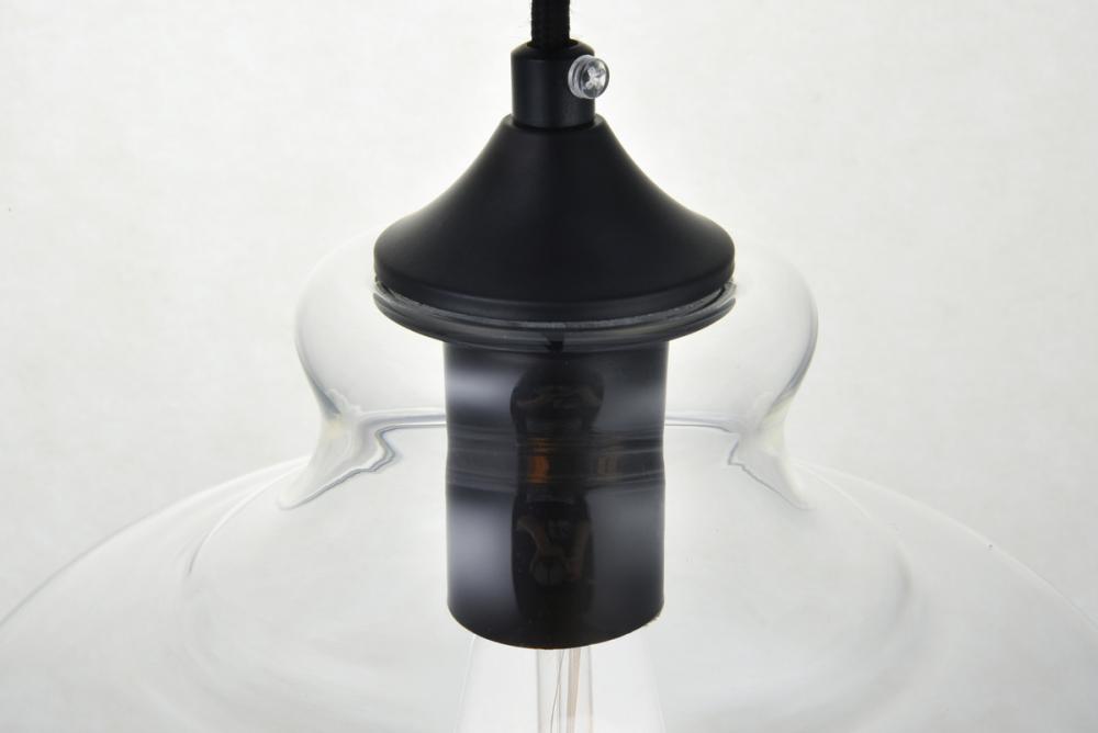 The small, but mighty Destry collection offers sleek pendant lamps that will add a powerful accent to your urban, industrial, or transitional décor. The light’s black hardware finish adds to the interest of the piece. Black 'top hat' design accentuates the clear glass shade. Each black and clear conical shade holds one incandescent or LED light bulb (not included). Brighten your kitchen island, bathroom, entryway, or den with this one-light statement fixture. You may adjust the height to your desired length between 15 and 68