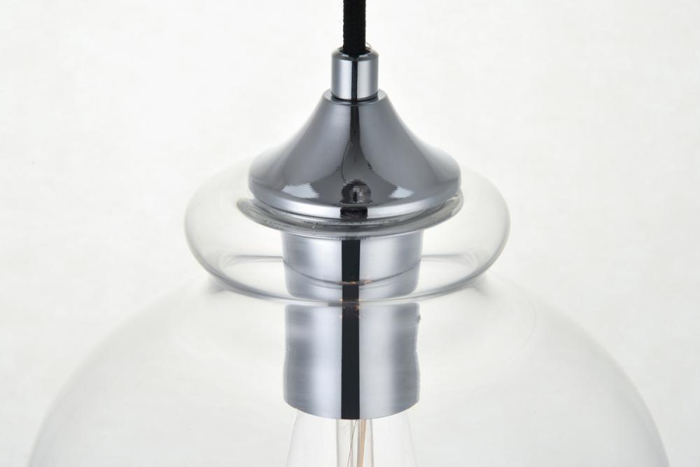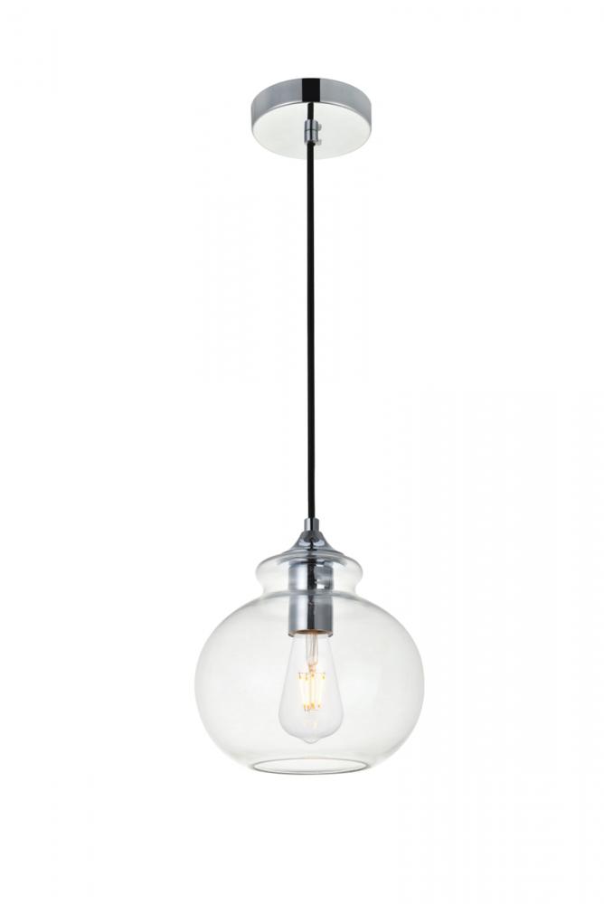 The small, but mighty Destry collection offers sleek pendant lamps that will add a powerful accent to your urban, industrial, or transitional décor. The light’s chrome hardware finish adds to the interest of the piece. Chrome 'top hat' design accentuates the clear glass shade. Each chrome and clear conical shade holds one incandescent or LED light bulb (not included). Brighten your kitchen island, bathroom, entryway, or den with this one-light statement fixture. You may adjust the height to your desired length between 15 and 68