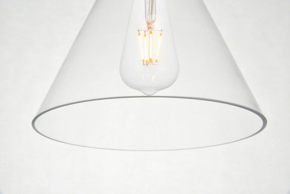 The small, but mighty Destry collection offers sleek pendant lamps that will add a powerful accent to your urban, industrial, or transitional décor. The light’s black hardware finish adds to the interest of the piece. Black 'top hat' design accentuates the clear glass shade. Each black and clear conical shade holds one incandescent or LED light bulb (not included). Brighten your kitchen island, bathroom, entryway, or den with this one-light statement fixture. You may adjust the height to your desired length between 15 and 88