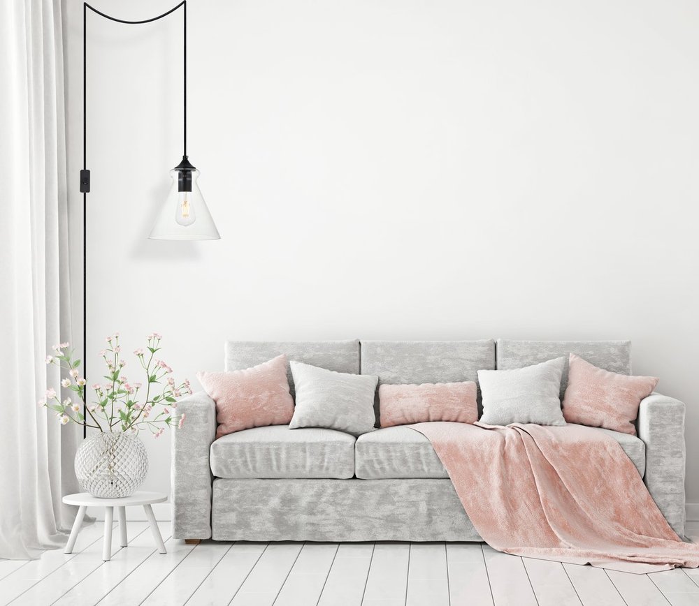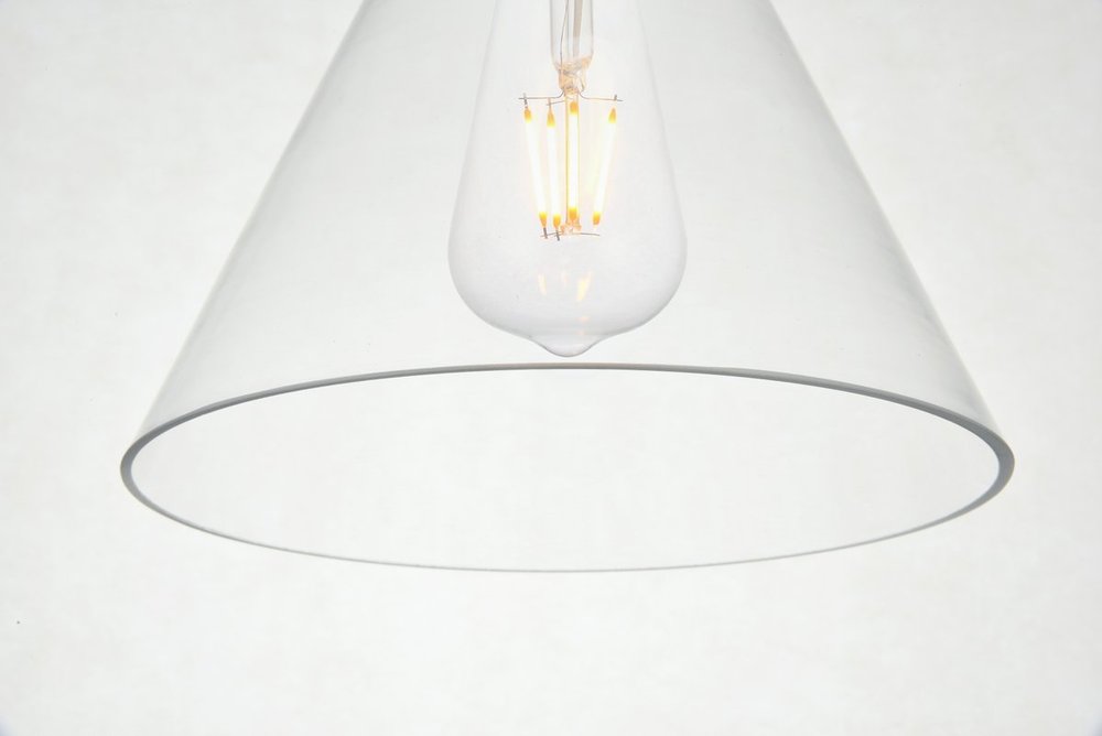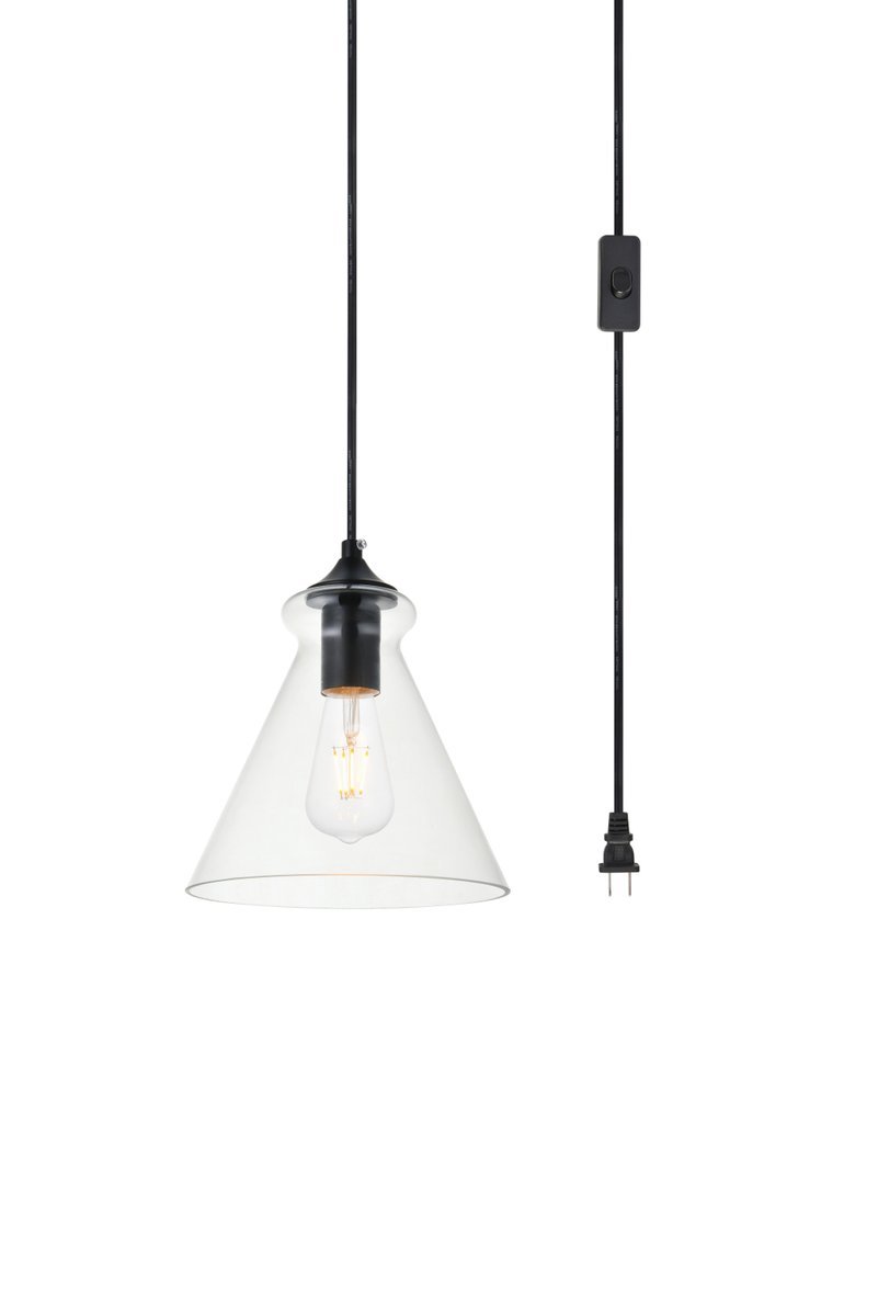 The small, but mighty Destry collection offers sleek pendant lamps that will add a powerful accent to your urban, industrial, or transitional décor. The light’s brass hardware finish adds to the interest of the piece. Black 'top hat' design accentuates the clear glass shade. Each black and clear conical shade holds one incandescent or LED light bulb (not included). Brighten your kitchen island, bathroom, entryway, or den with this one-light statement fixture. Plug-in design for easy access lighting with built-in on/off switch. Simply hang this piece on the provided swag hooks and plug it in for an effortlessly easy installation - can be hung from a sloped or vaulted ceiling.