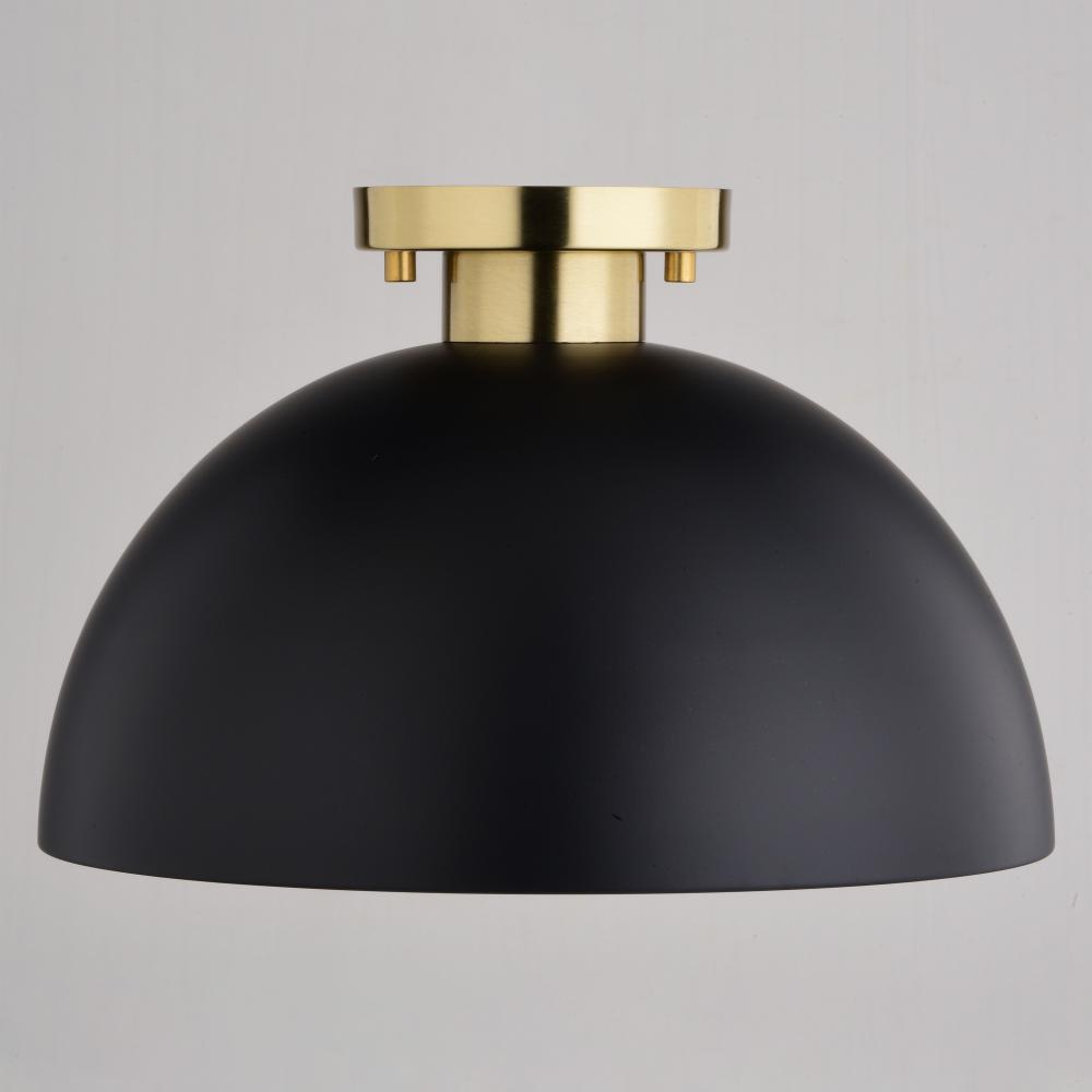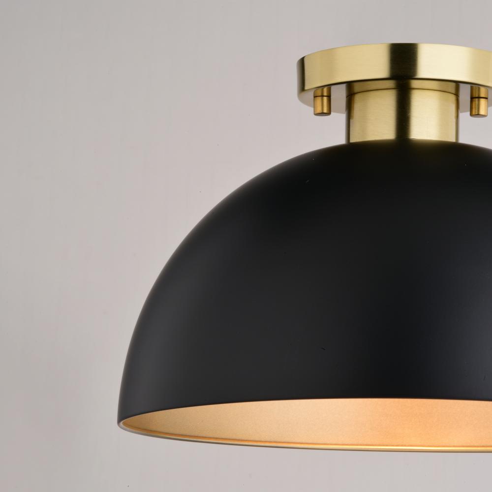 The Devon collection showcases a ceiling light that exudes elegance and simplicity at a great price point. The classic matte black dome shape is complemented beautifully by gold satin brass accents which adds a luxe touch to the overall design. The golden interior casts a soft glow of focused light and shows off the light's blend of modern minimalism and classic elegance. This ceiling light works well with many mid-century modern and contemporary decors whether it’s your kitchen, breakfast nook, home office or entryway.