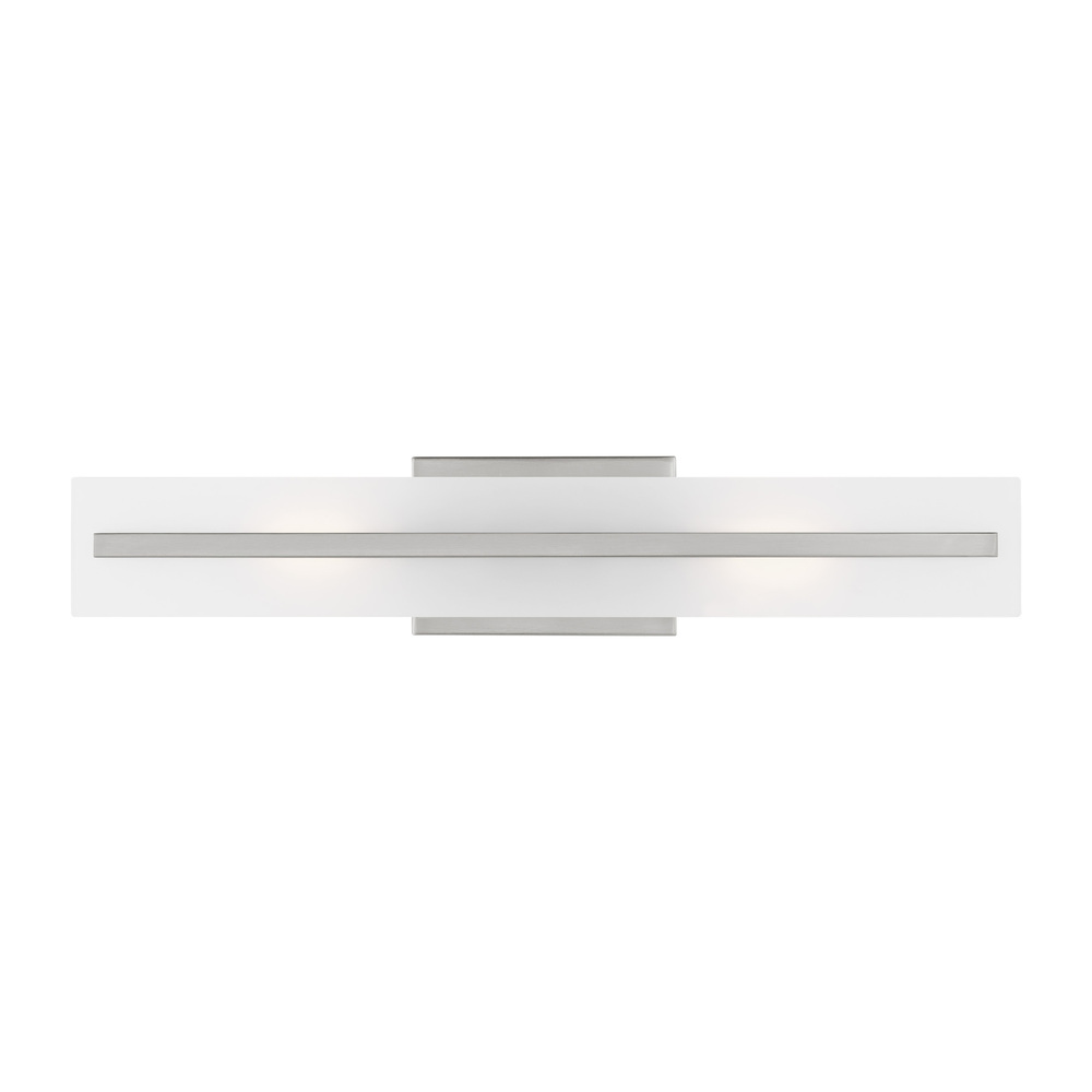 The Dex two light vanity fixture in brushed nickel silver is a contemporary design with three finishes and white acrylic diffuser creating a crisp look and bright clean ambiance. With the clean lines and classic styling, the Dex vanity series is versatile enough to be used in any transitional setting. Dex is an ENERGY STARĀ® qualified.