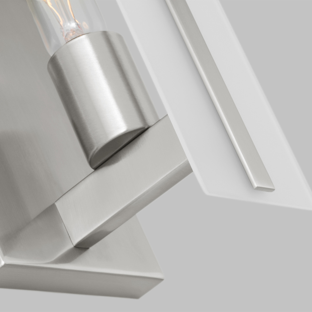 The Dex one light wall sconce in brushed nickel silver is a contemporary design with three finishes and white acrylic diffuser creating a crisp look and bright clean ambiance. With the clean lines and classic styling, the Dex vanity series is versatile enough to be used in any transitional setting. Dex is an ENERGY STARĀ® qualified.