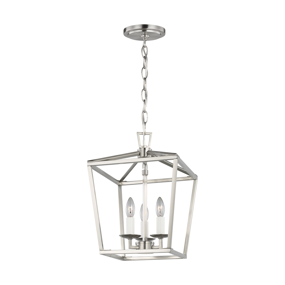 The Dianna three light indoor pendant in brushed nickel is the perfect way to achieve your desired fashion or functional needs in your home. The open, airy iron frame of this three-dimensional lantern brings depth and structure to any space.