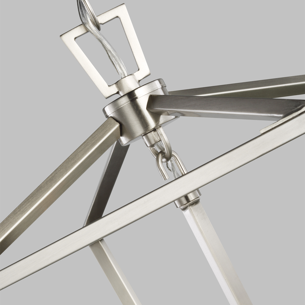 Modern, open-frame fixture with traditional form will complement any dining room, kitchen, or foyer