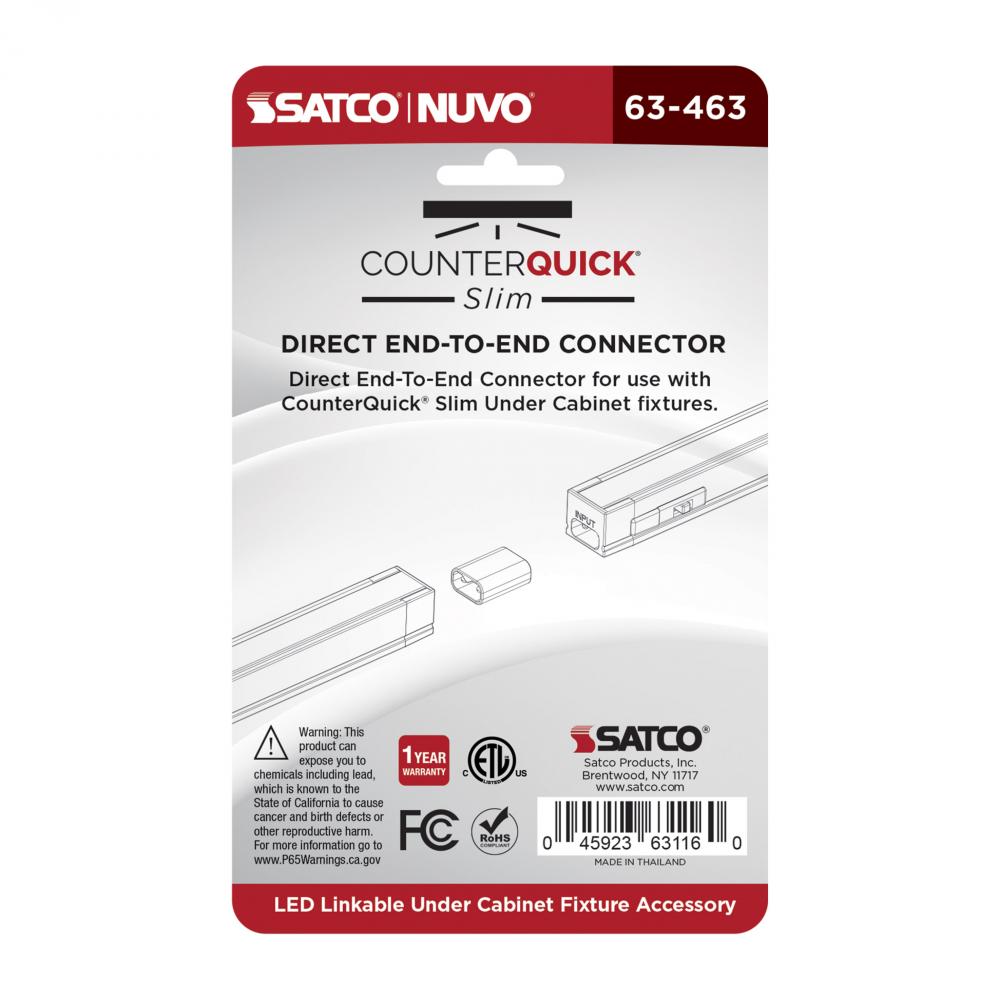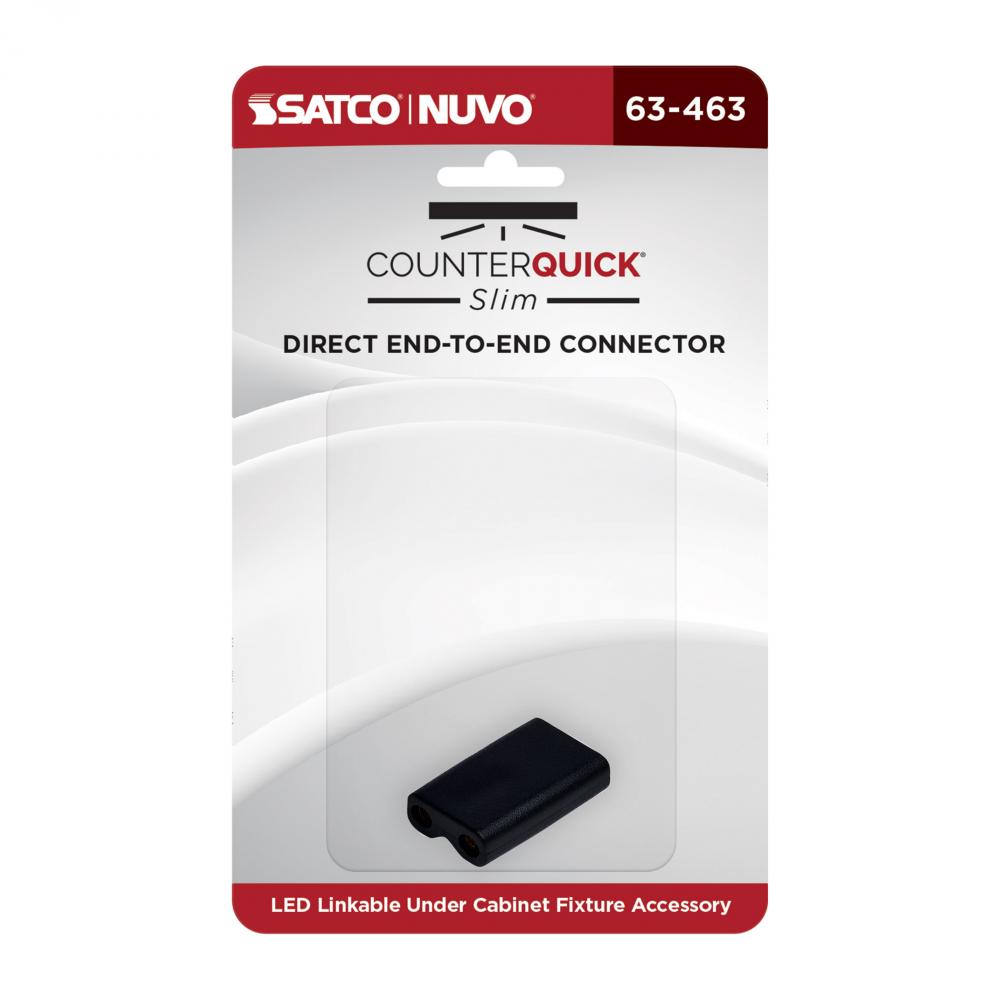 Skip the extra steps of wiring each fixture individually, by linking them together with the 63-463 direct end to end connector in black. CounterQuick Slim end-to-end connectors make connecting under cabinet fixtures together quick and easy.