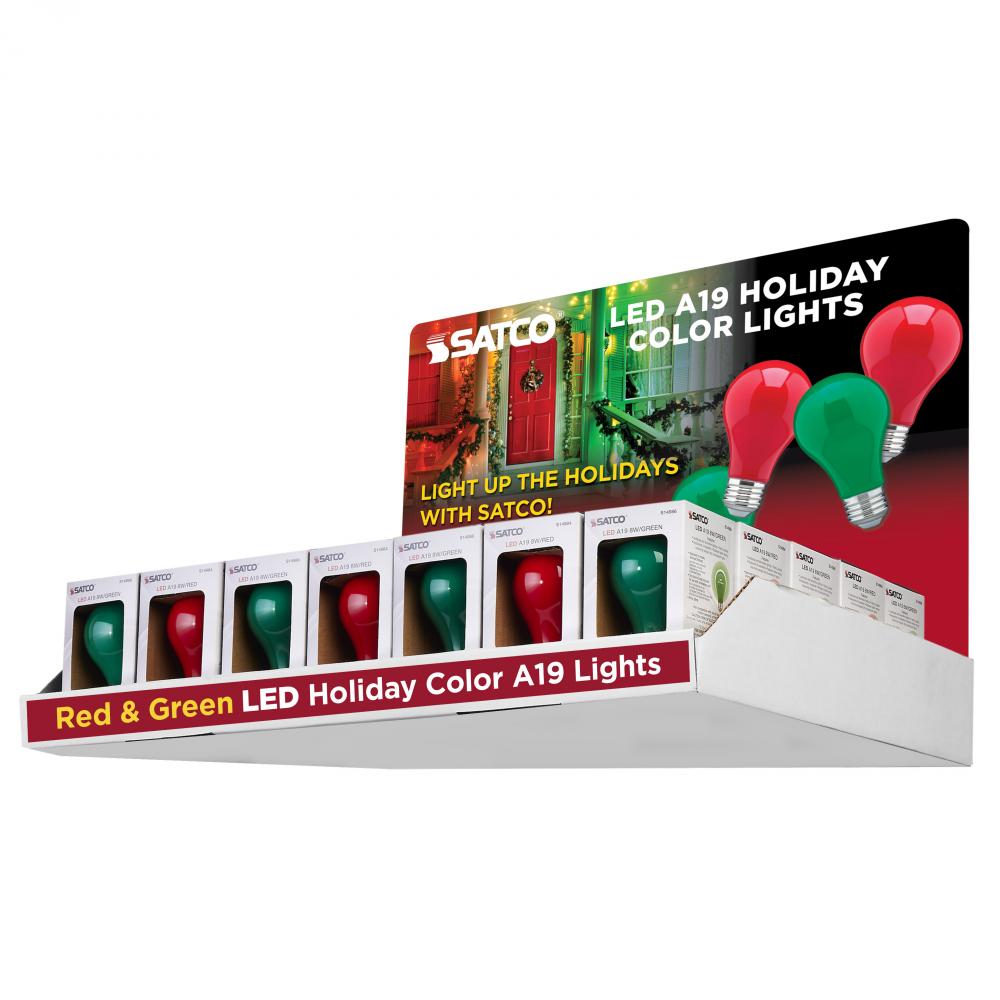 Display Unit Containing 126 Total Pieces; 72 Pieces of S14984 8 Watt A19 LED in Red; 54 Pieces of S14986 8 Watt A19 LED in Green