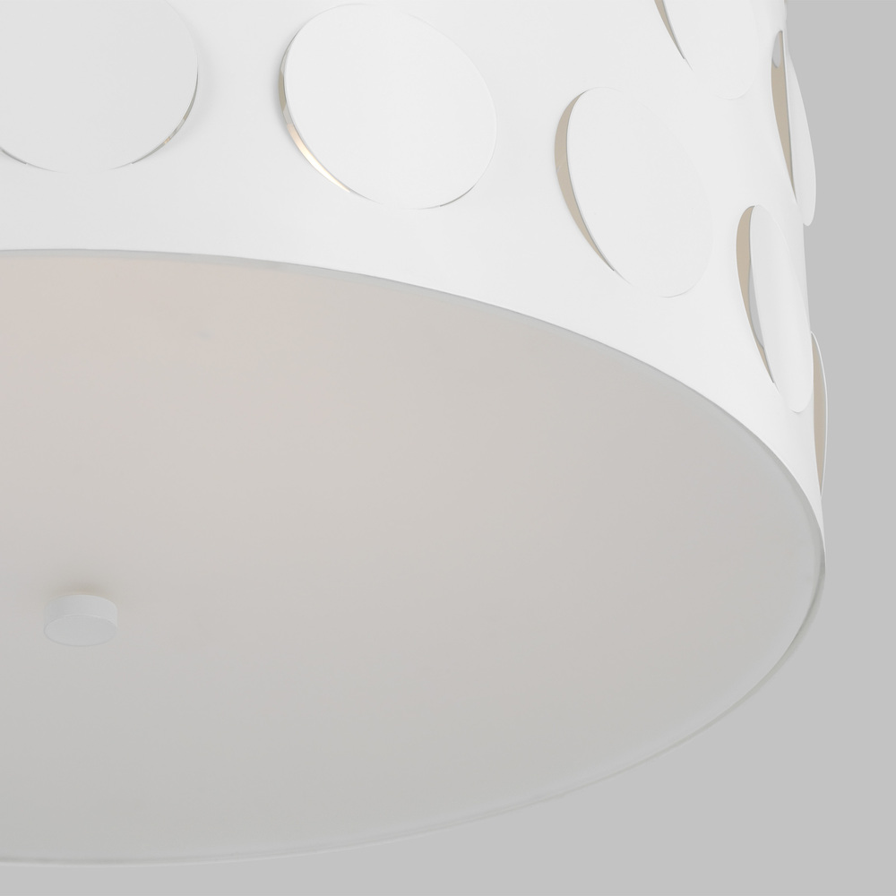 Dots are iconic to the kate spade brand—a simple and playful graphic motif. Dottie takes an iconic kate spade dot motif and cuts it into metal—creating a playful ambient light effect. A classic metal drum shade with an extra twist of perforated pattern. Use this fixture in place of any classic drum shade application, above a dining table, in a nook, or above an island.