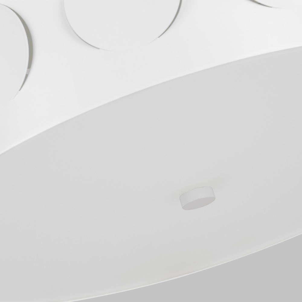 A cheerful, modern take on the classic flush mount, this fixture is crafted of steel and a matte white motif design.
