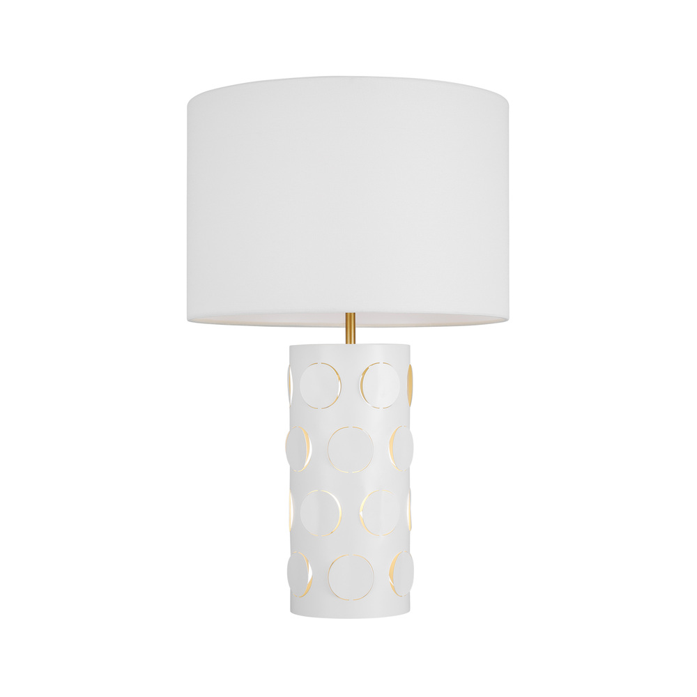 Dots are iconic to the kate spade brand—a simple and playful graphic motif. Dottie takes an iconic kate spade dot motif and cuts it into metal—creating a playful ambient light effect. A classic metal drum shade with an extra twist of perforated pattern. We’ve taken an iconic kate spade dot motif and pierced it into metal to create a base of a cylindrical table lamp. The base is illuminated—creating a playful ambient light effect in addition to the glowing drum shade. Use this fixture in any classic table lamp scenario—on either side of a sofa or bed, or in an office or entry as well.