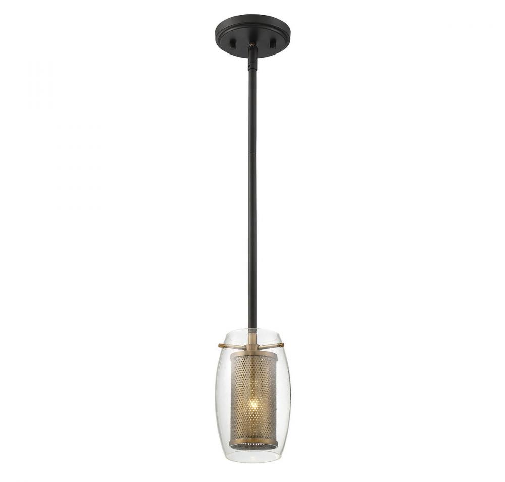 From the imaginative mind of designer Brian Thomas comes a mini light pendant with very big impact. Ultra chic and current with its use of mixed metals, the fashionable Dunbar 1-light mini-pendant by Savoy House is the ideal interior lighting choice for transitional, contemporary, mid-century modern, and industrial decors. With its warm brass mesh and glass styling suspended by a sleek bronzed metal rod, it’s an intriguing design that looks great as bath lighting, entry lighting, over a stairway or in the kitchen. Made with premium quality components, it has an adjustable rod length and canopy that adapts to sloped ceilings. Hang one or hang several of these mini light pendants at varying heights for modern style lighting that moves!