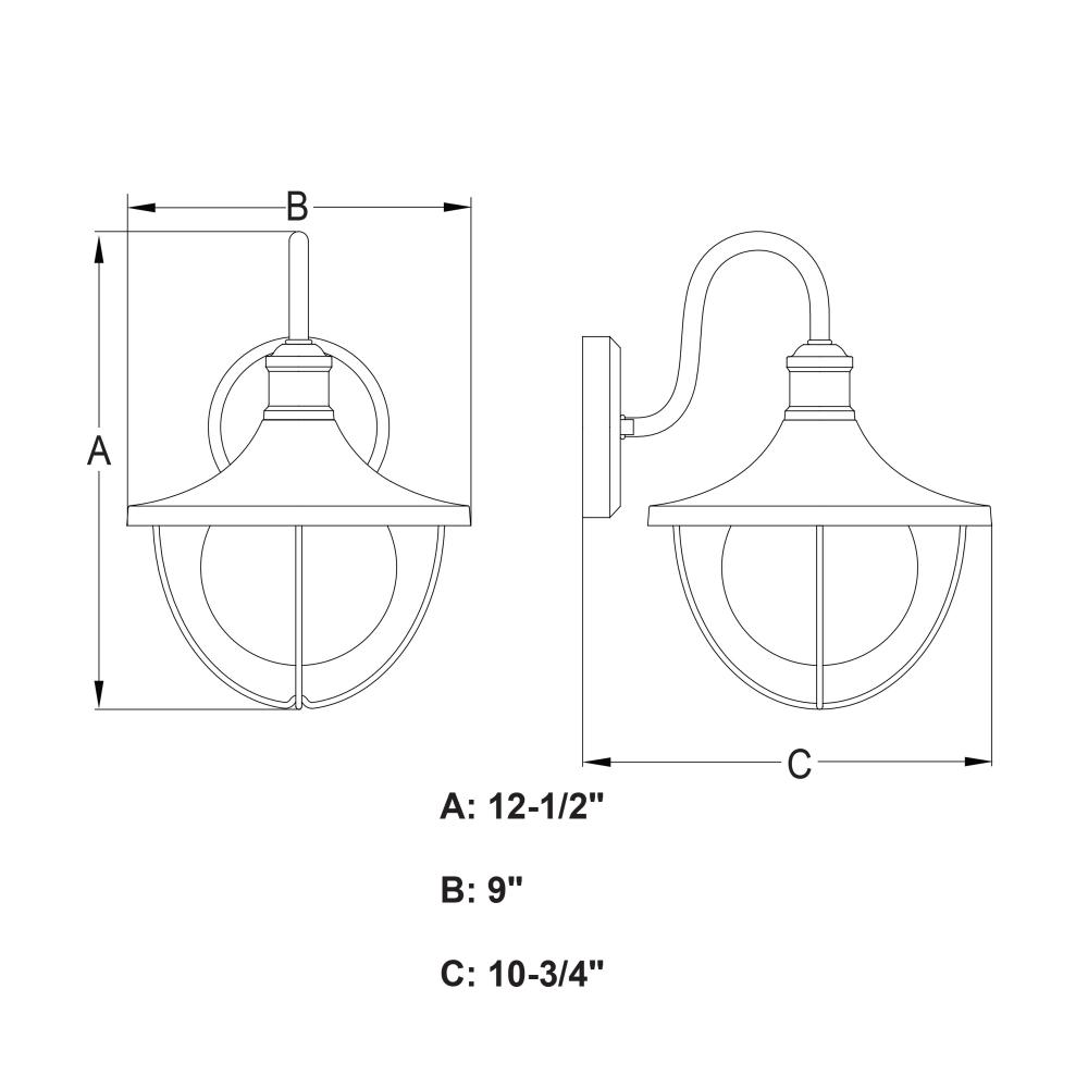 9-in W x 12.5-in H x 10.75-in D with 4.72-in W x 4.72-in H backplate